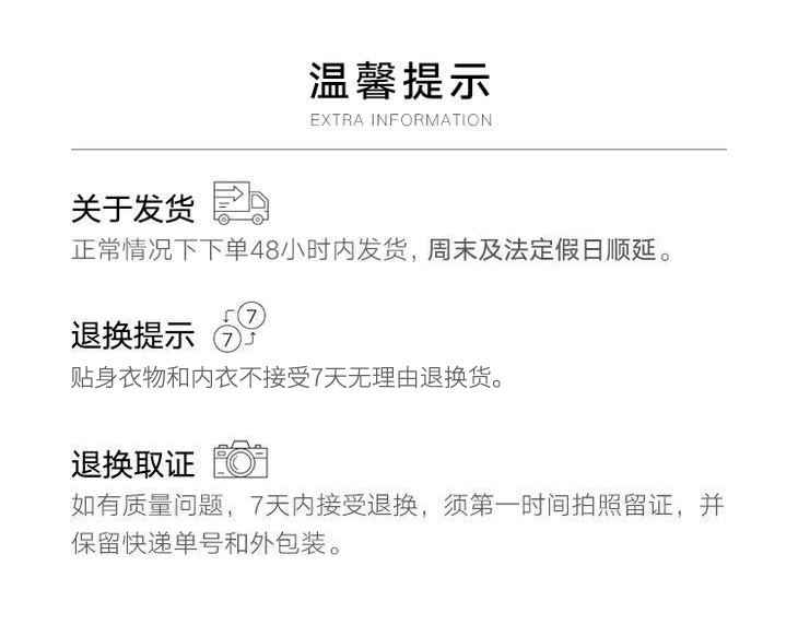 1、贴身衣物,卫生起见不接受无理由退换货哈!下单前请跟客服确认清楚颜色与厚度,下单后不予修改!