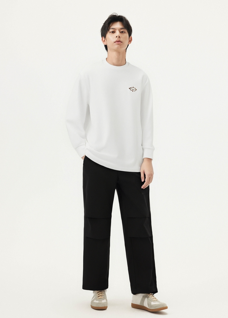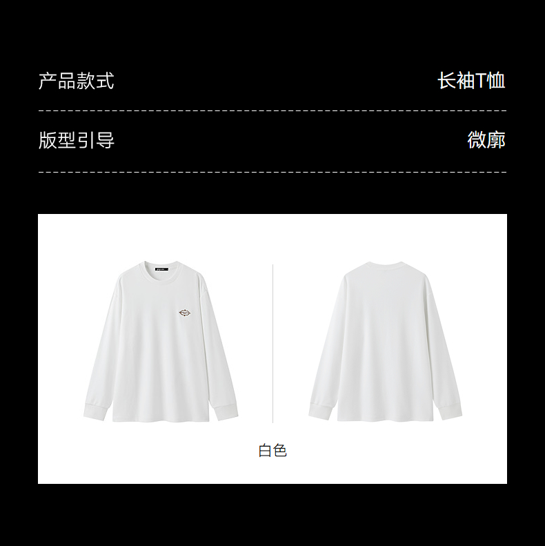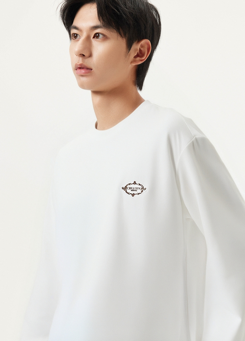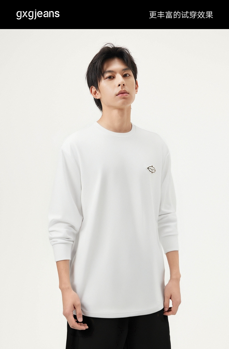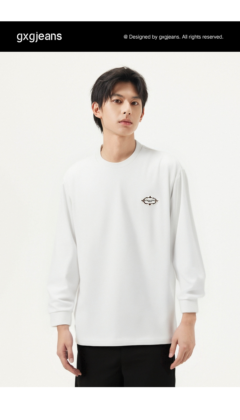 gxg.jeans男装 白色细致绣花基础休闲圆领长袖T恤内搭 25年春热卖