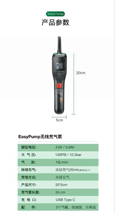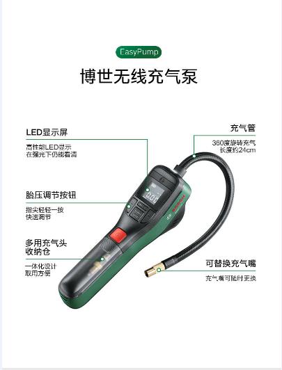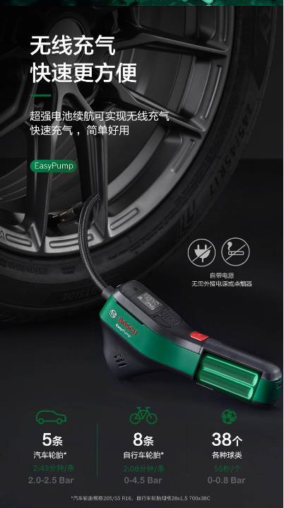 BOSCH/博世 车载无线充气泵12v小轿车便携式电动汽车用轮胎打气泵