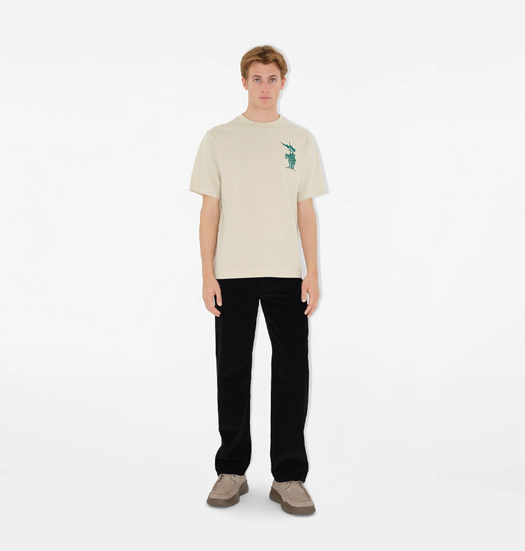 BURBERRY 巴宝莉 男士马术骑士徽标棉质圆领短袖T恤 米色 8102451 B7078