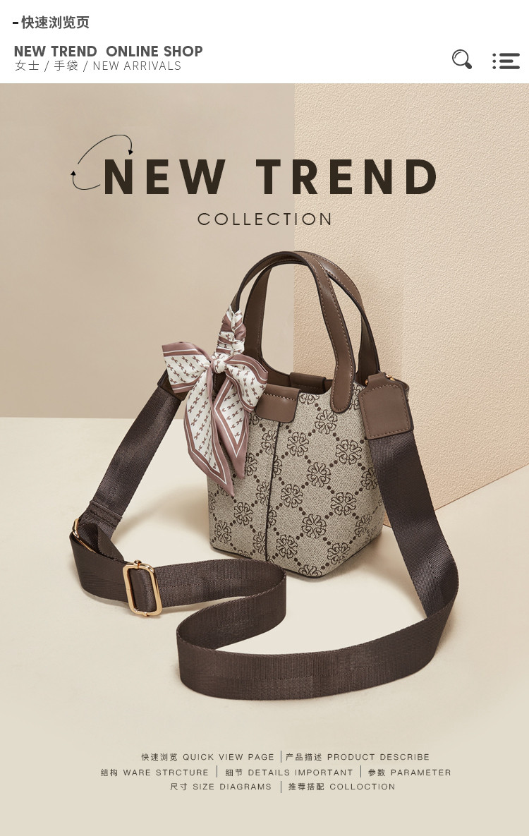 Safiya/索菲娅 包包2023新款手提包时尚水桶包单肩包女斜挎包女包SF9111022Y