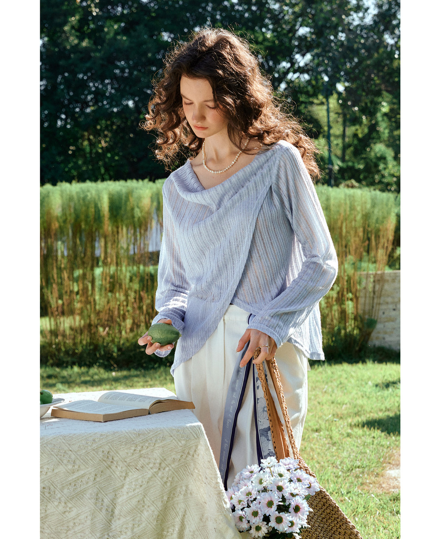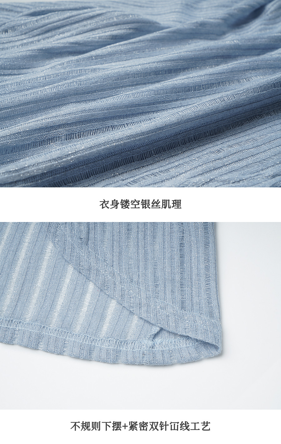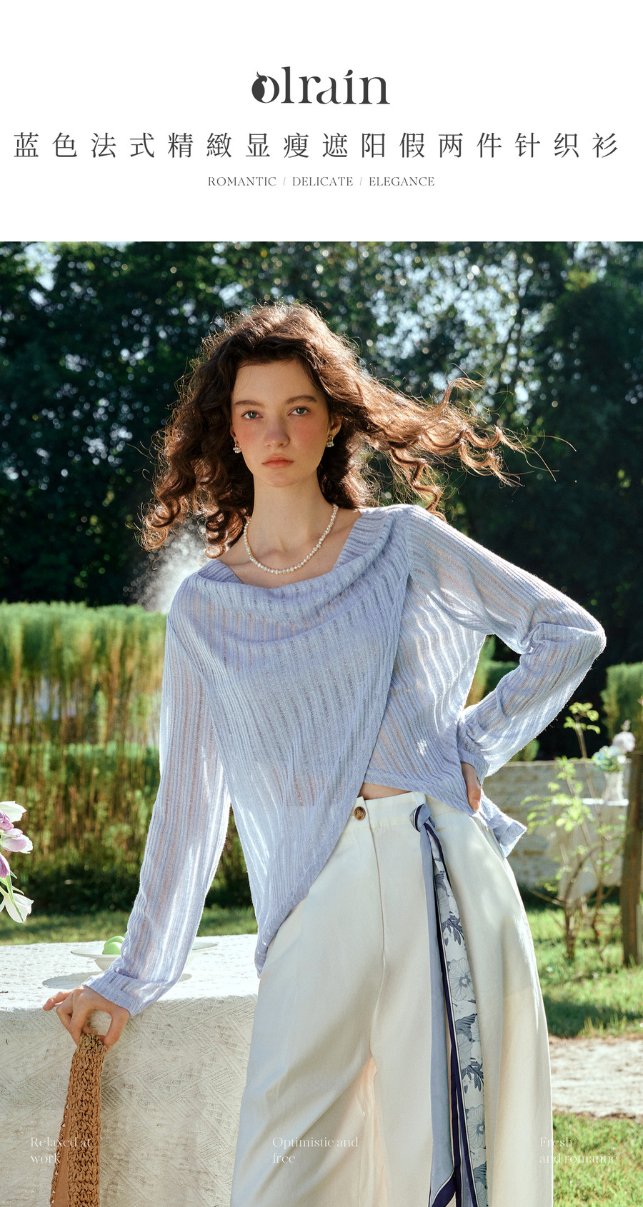 OLrain欧芮儿2026新款女春季蓝色法式精致显瘦假两件长袖针织衫