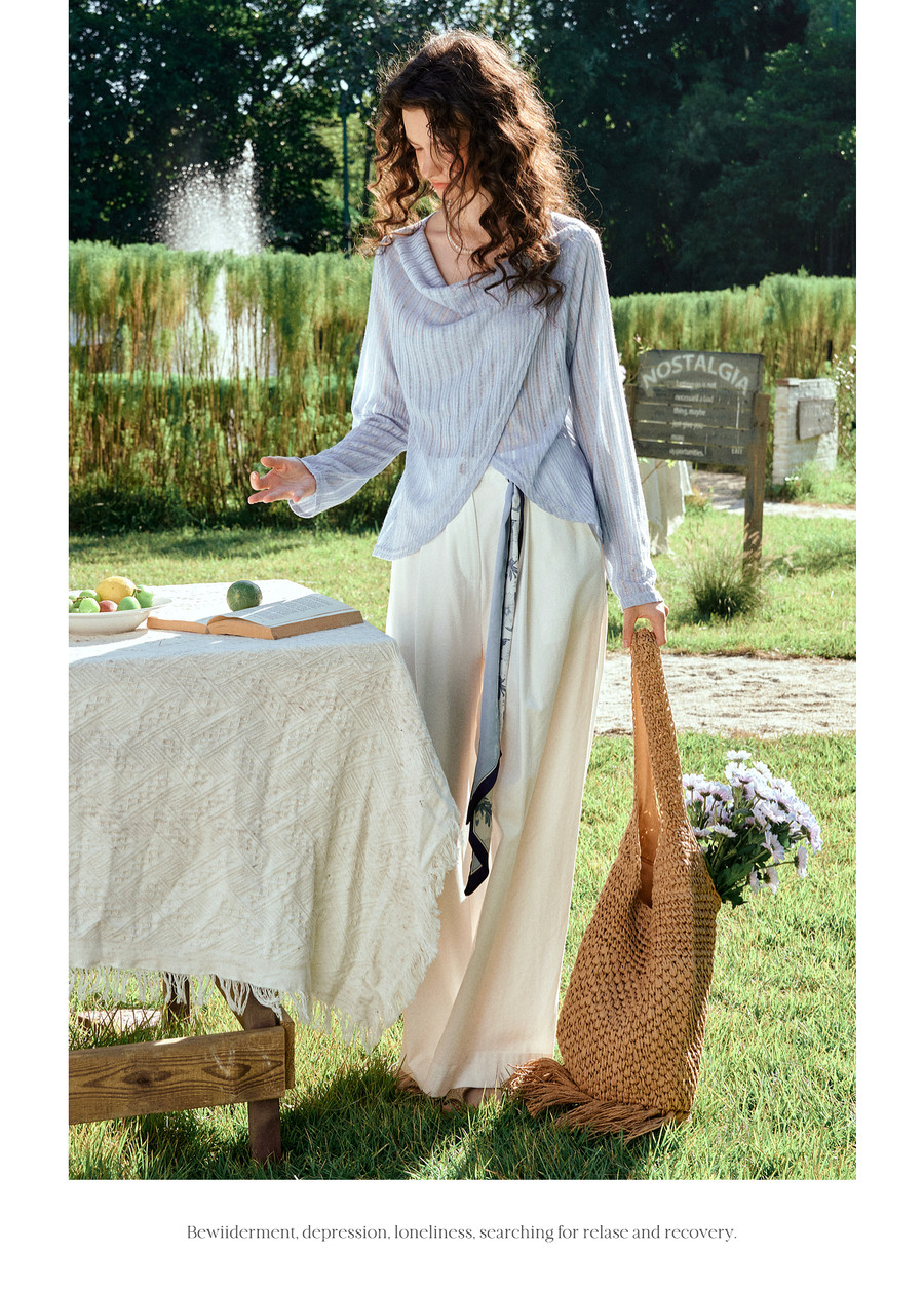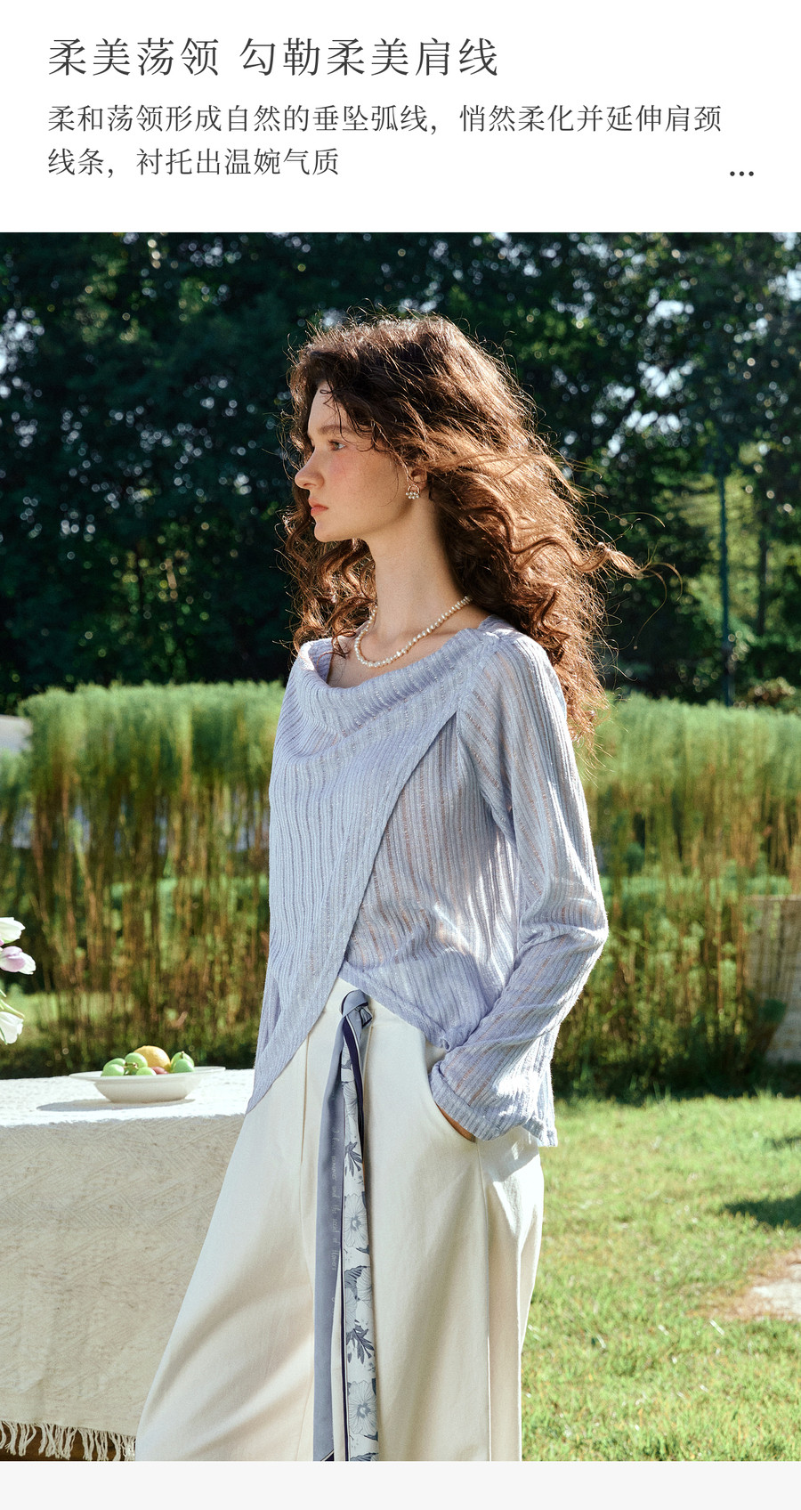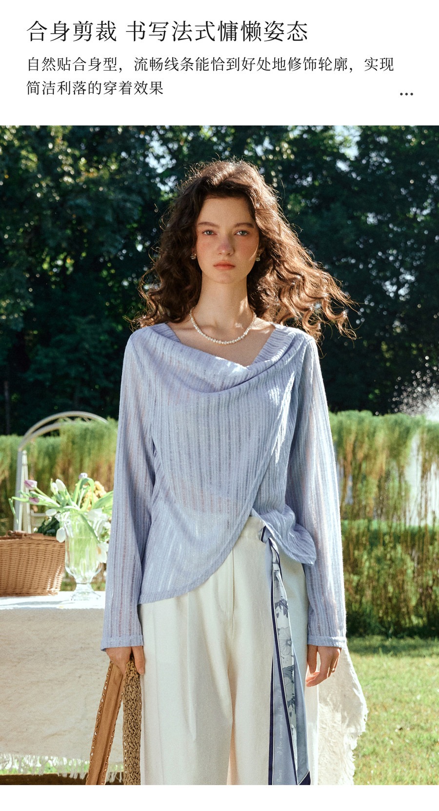 OLrain欧芮儿2026新款女春季蓝色法式精致显瘦假两件长袖针织衫