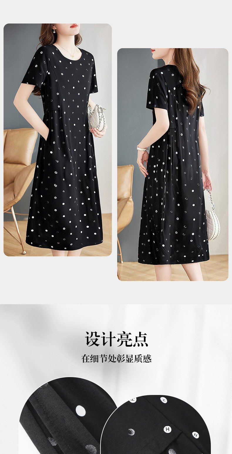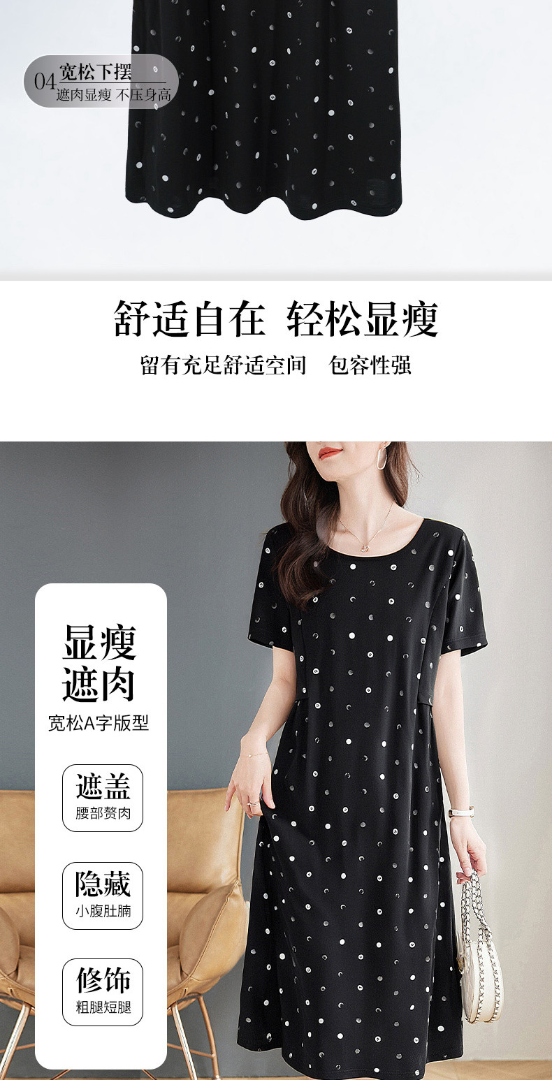气质波点连衣裙女夏2026年新款胖mm长裙宽松大码裙子显瘦遮肚女装