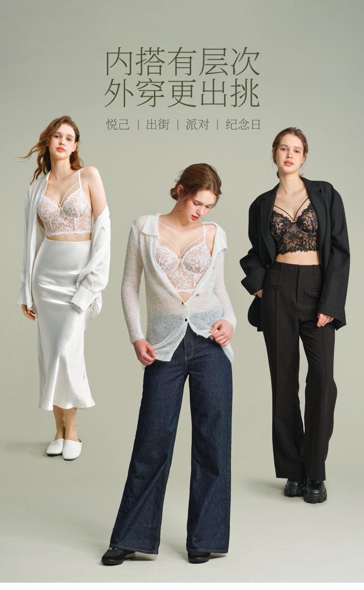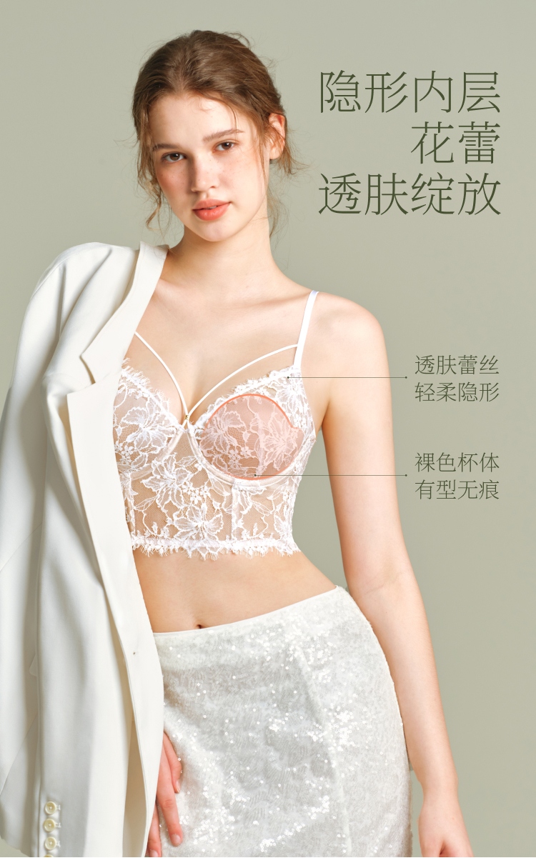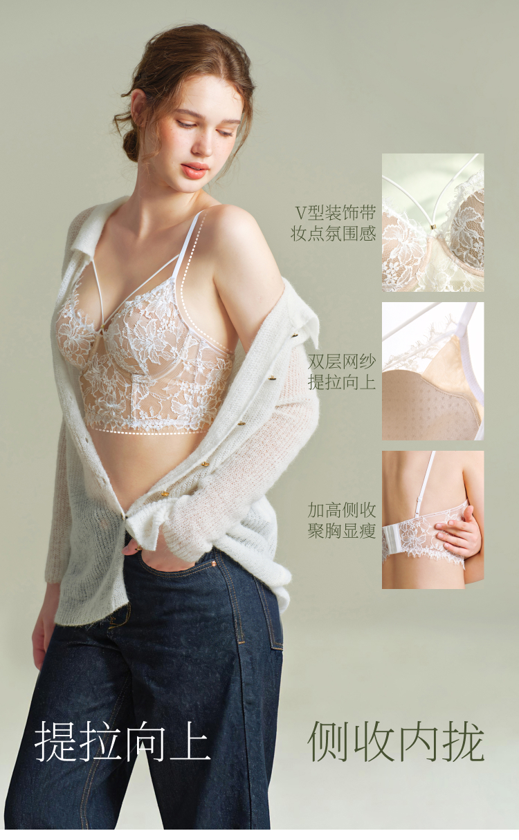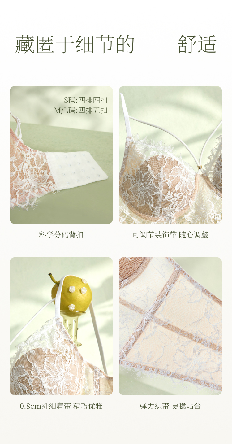 素肌良品【灵感缪斯】性感蕾丝内衣女士鱼骨胸衣小胸薄款显瘦美背-MX338-FX