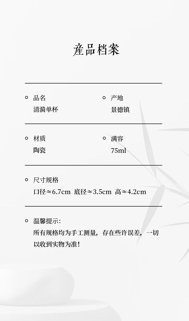 【特价】清漪茶杯景德镇小杯子手绘青花单杯瓷薄胎茶具主人杯陶瓷器品茗杯