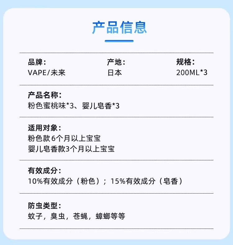 VAPE未来驱蚊喷雾儿童止痒防叮咬液避蚊胺防蚊200ml