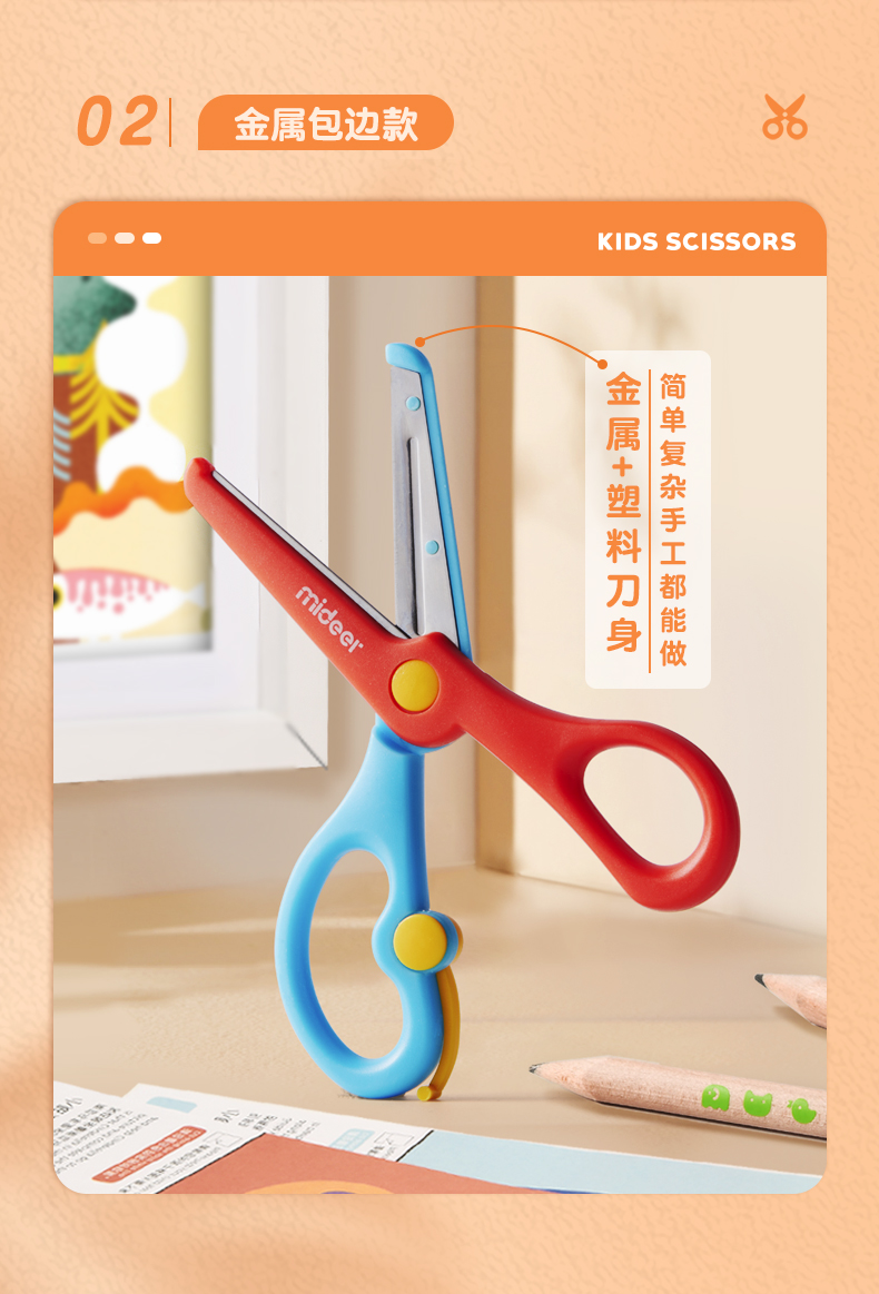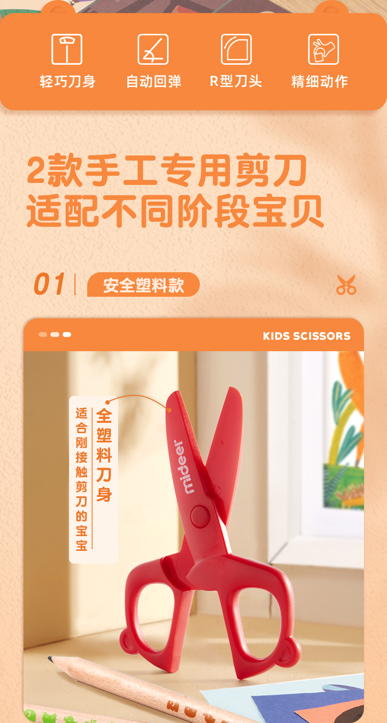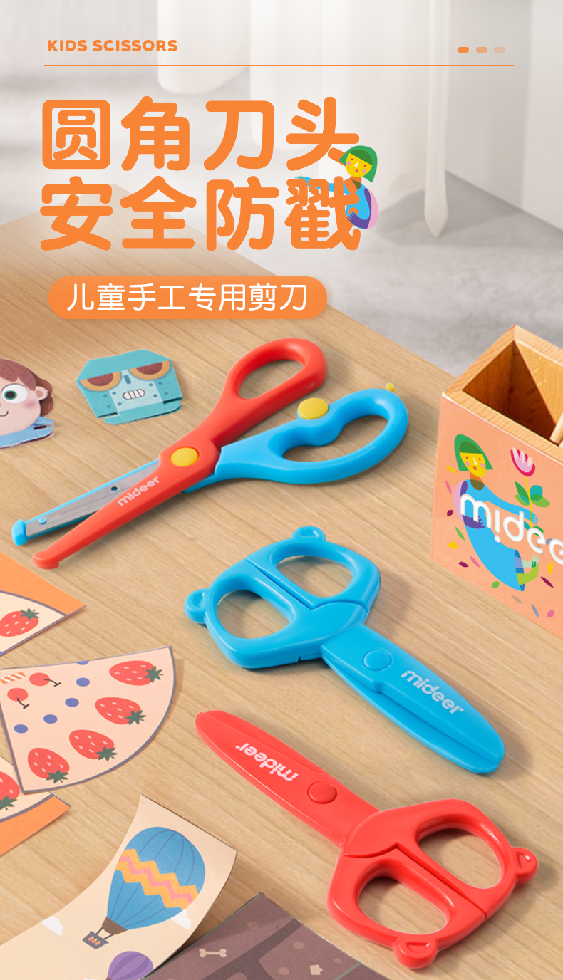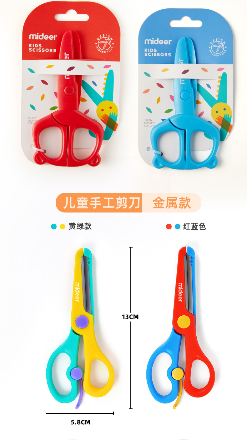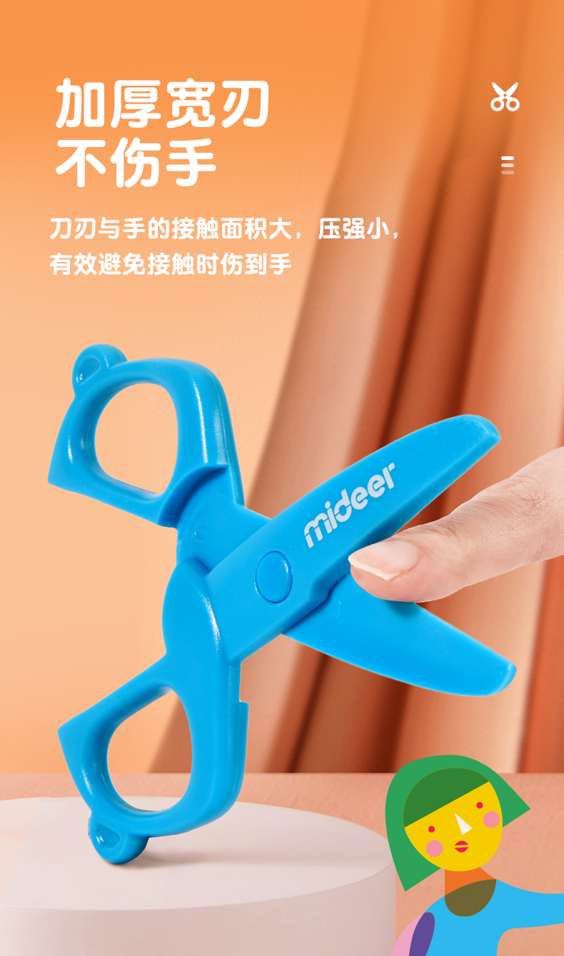 mideer弥鹿儿童剪刀安全手工塑料宝宝安全小号美工剪纸剪子圆头工具不伤手幼儿园0-3-6岁宝宝小孩玩具小剪子