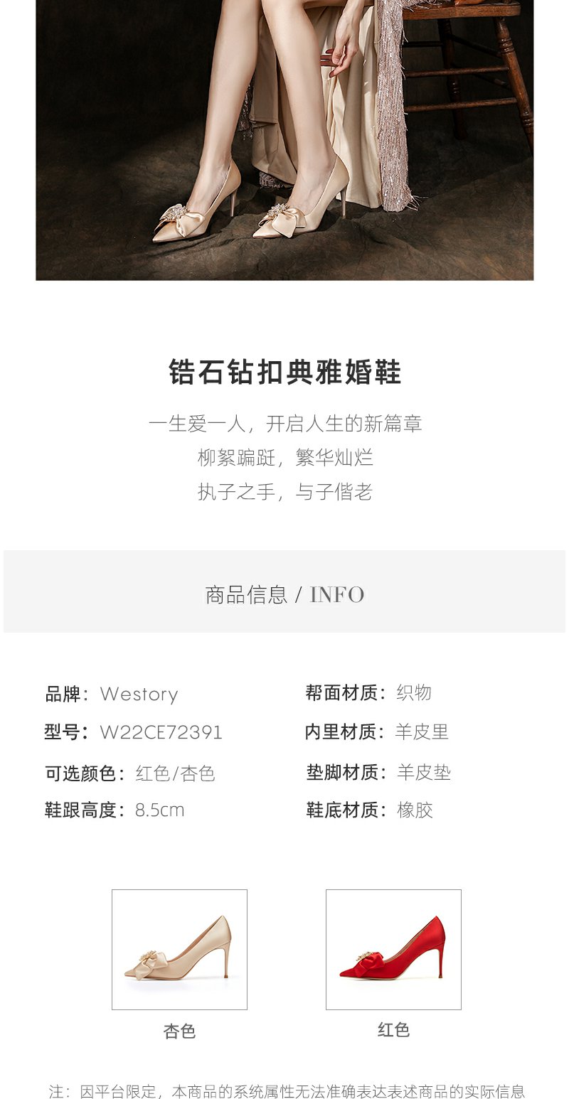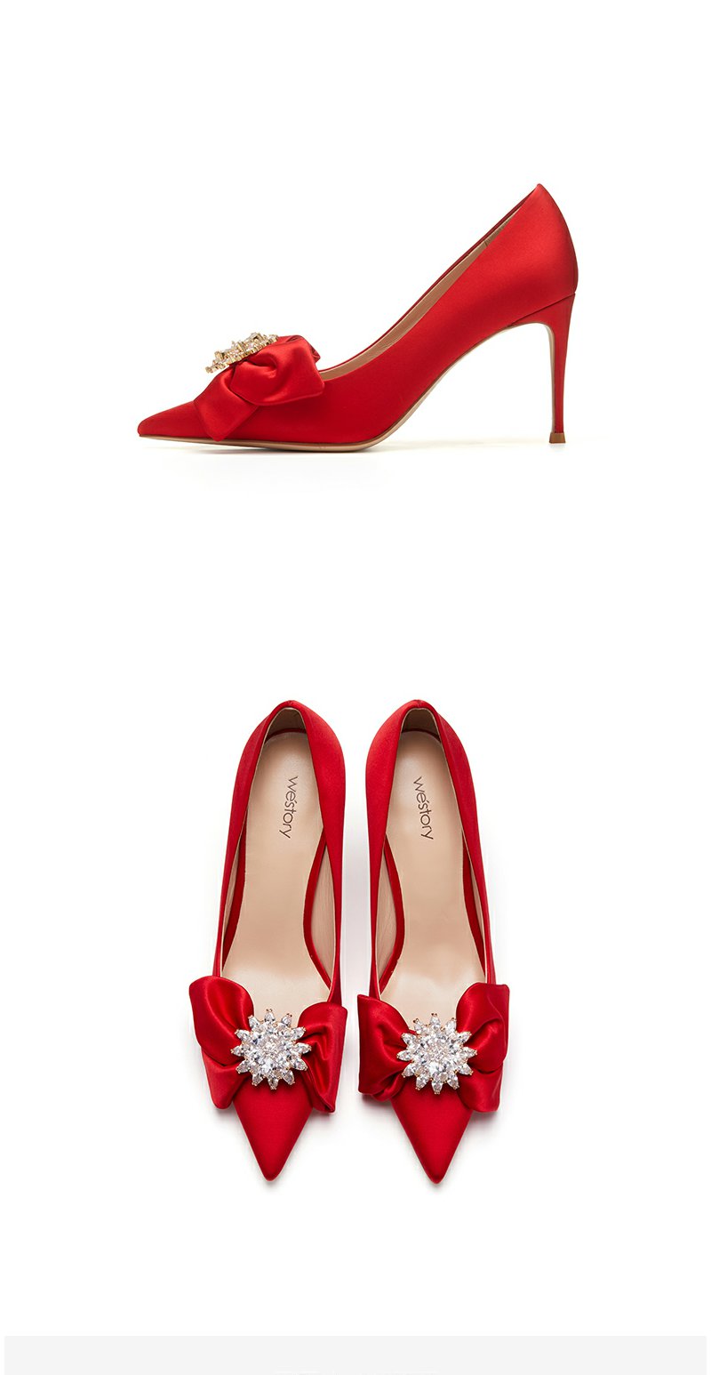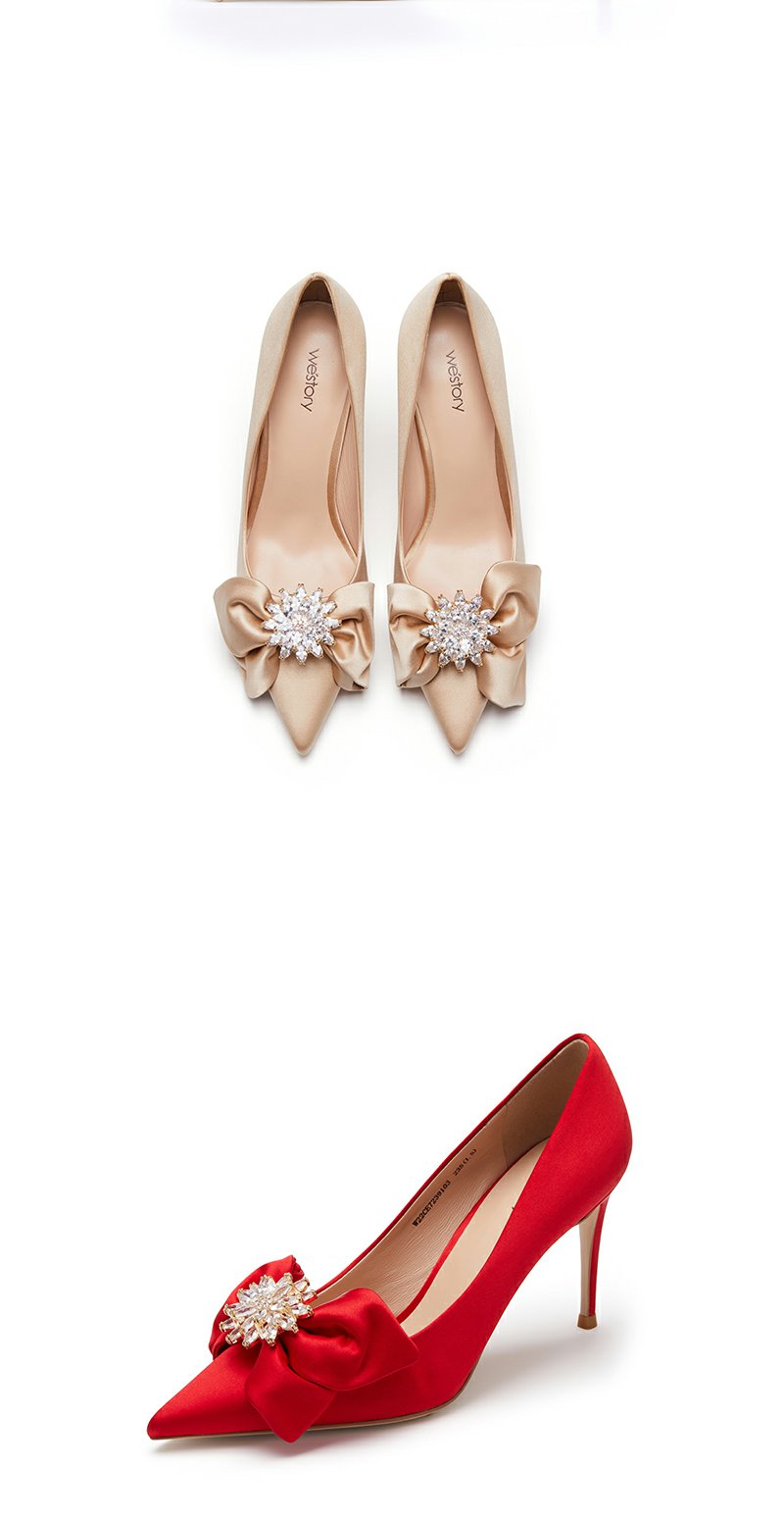 westory22年秋季商场同款新款尖头蝴蝶结细跟中式婚鞋单鞋女72391