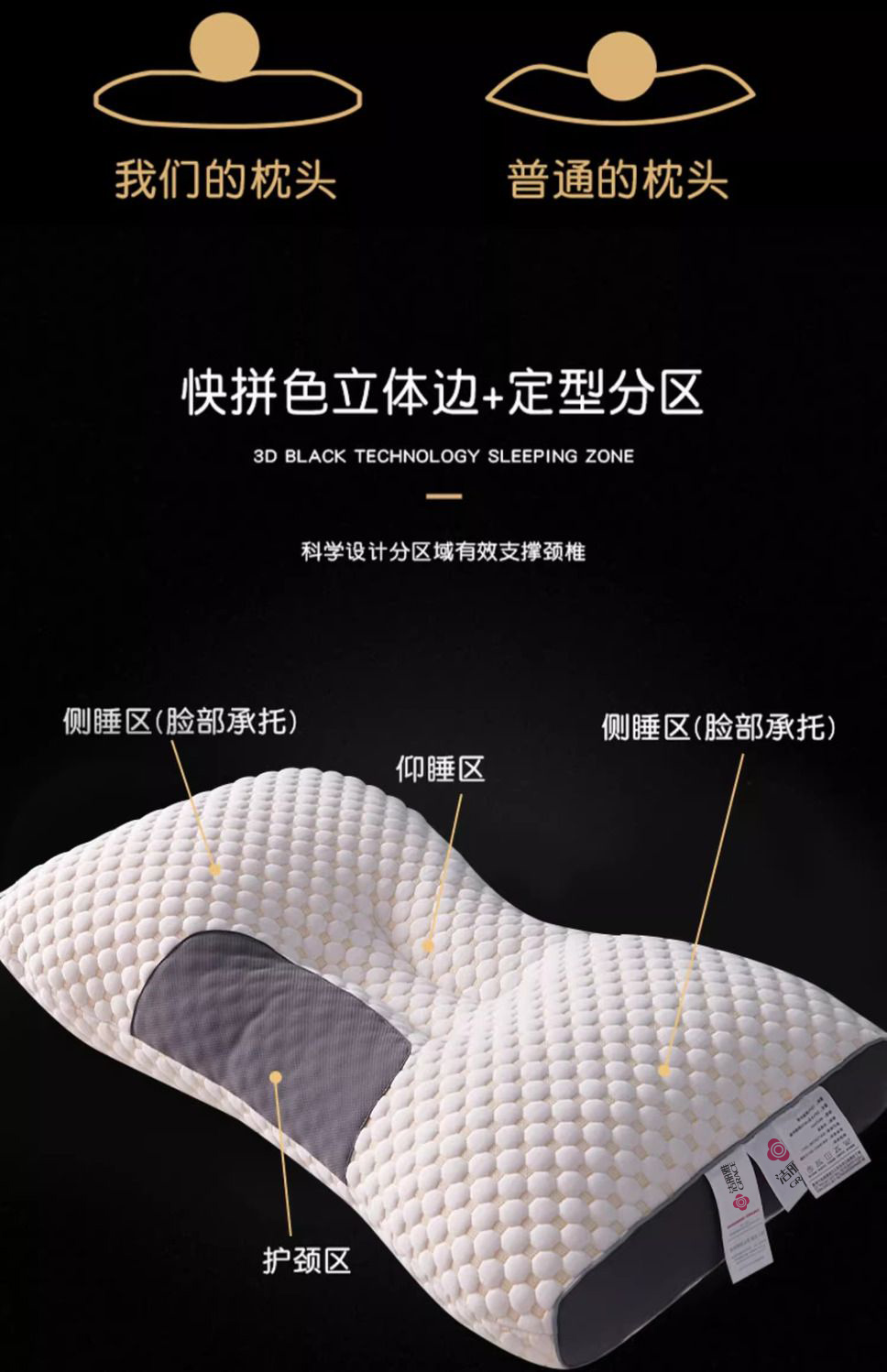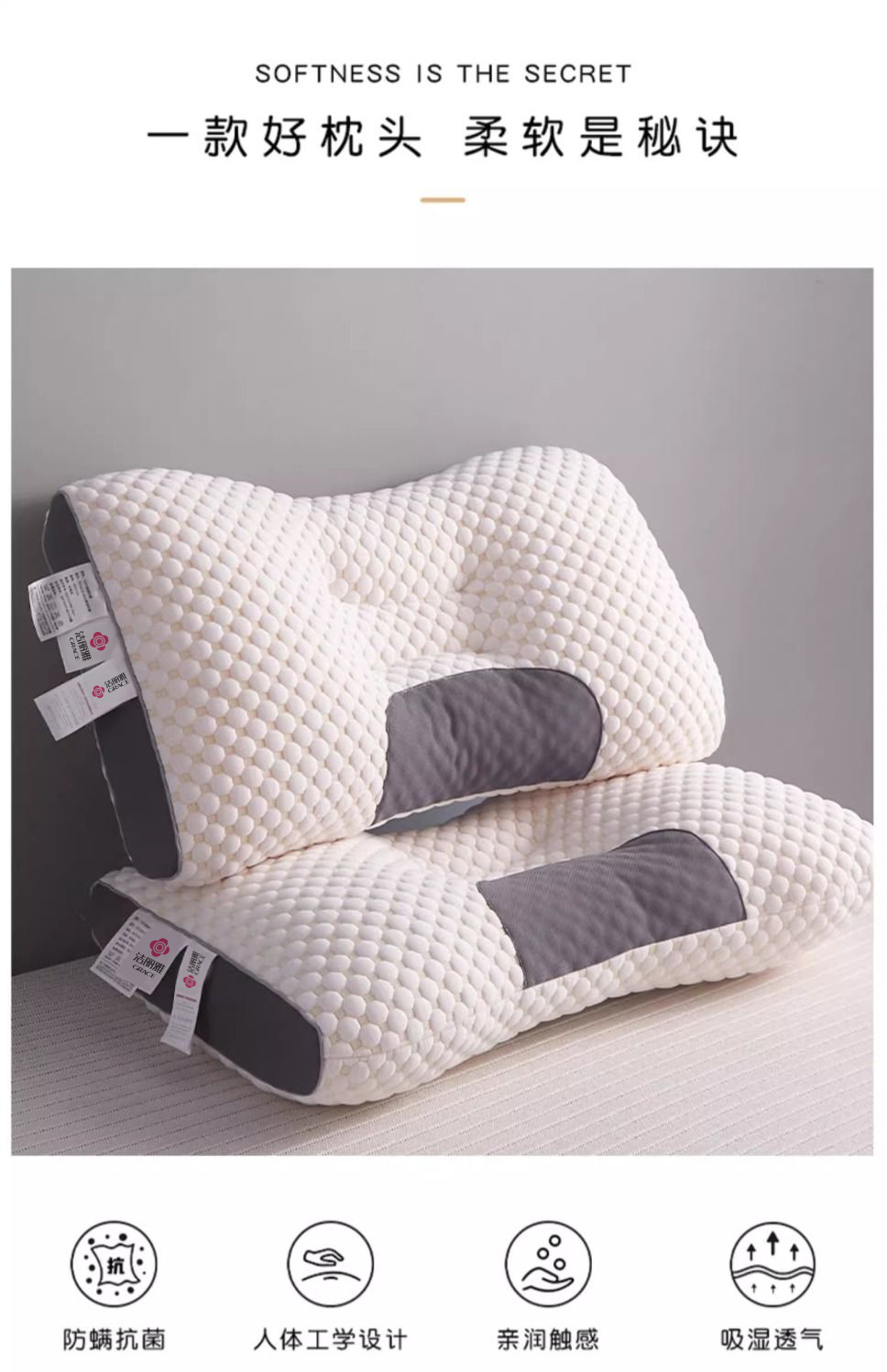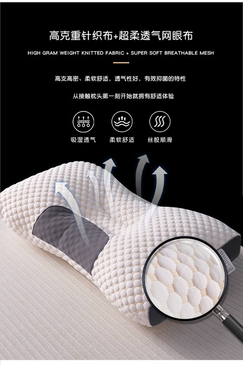 洁丽雅护颈承托按摩枕芯柔软家用单人睡眠枕成人护颈工学枕芯Y