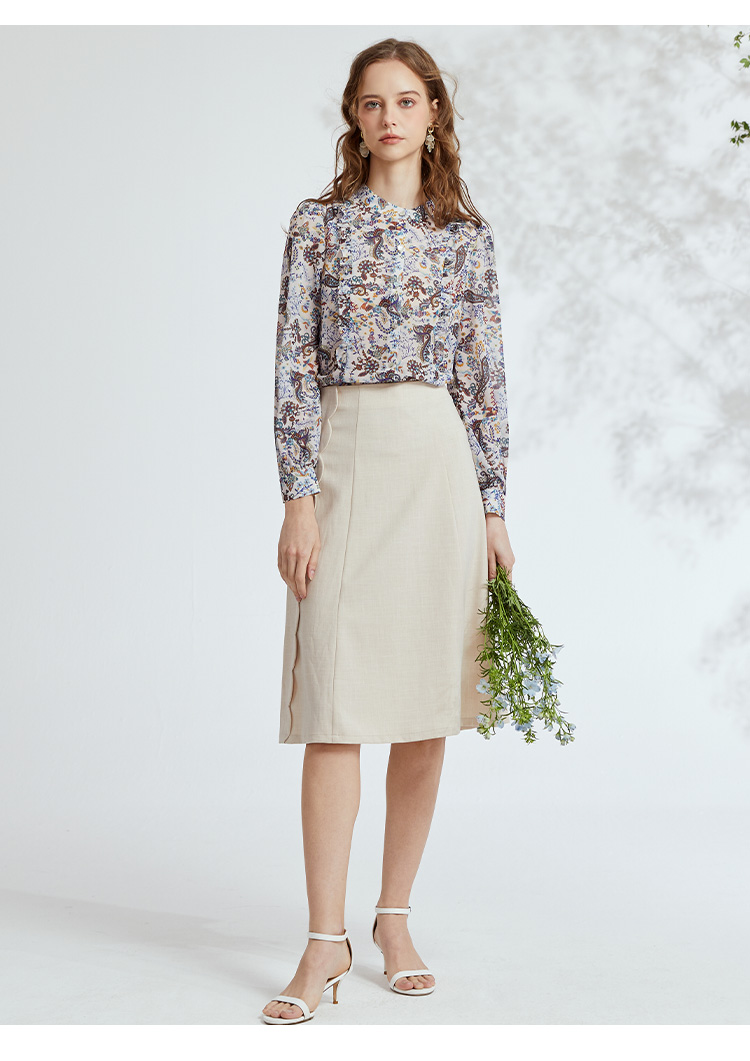 VIVIAN LIU Y2243002秋女装新款雪纺印花立领优雅宽松长袖套头衫