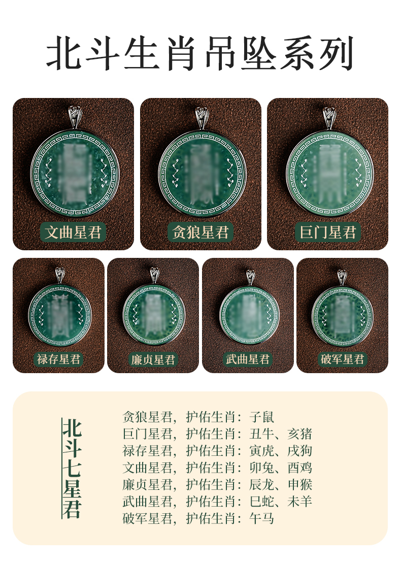 原创国风翡翠影雕北斗十二生肖吊坠男女同款本命吊坠