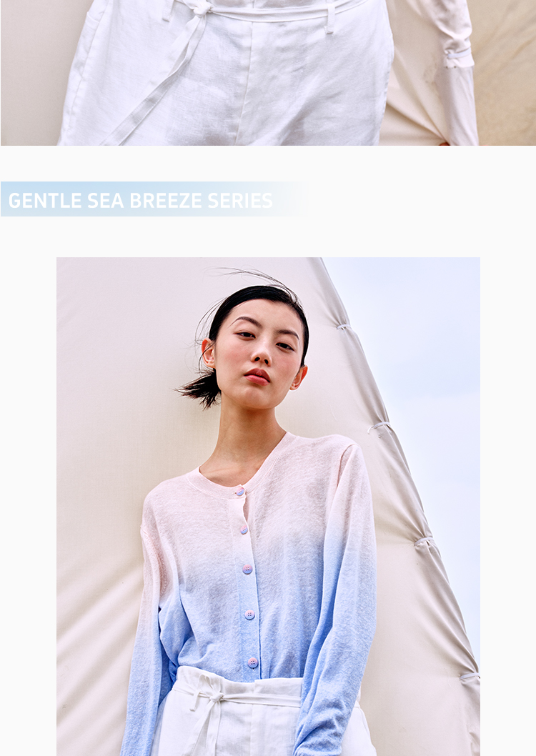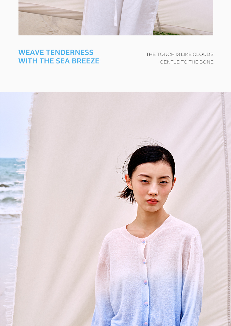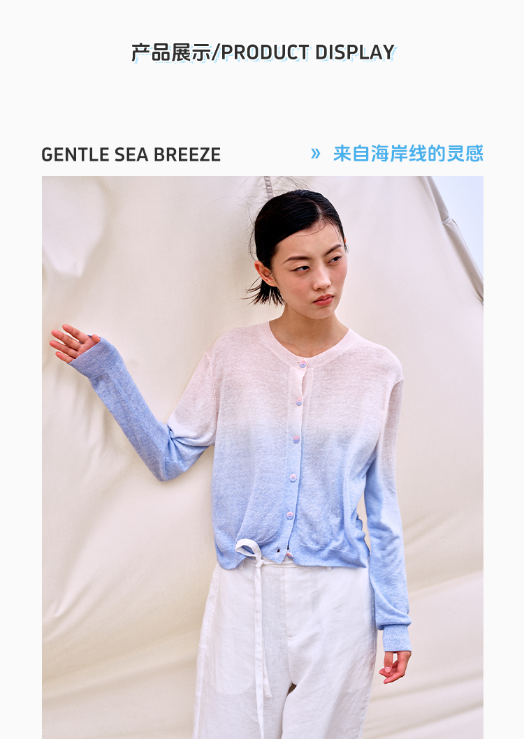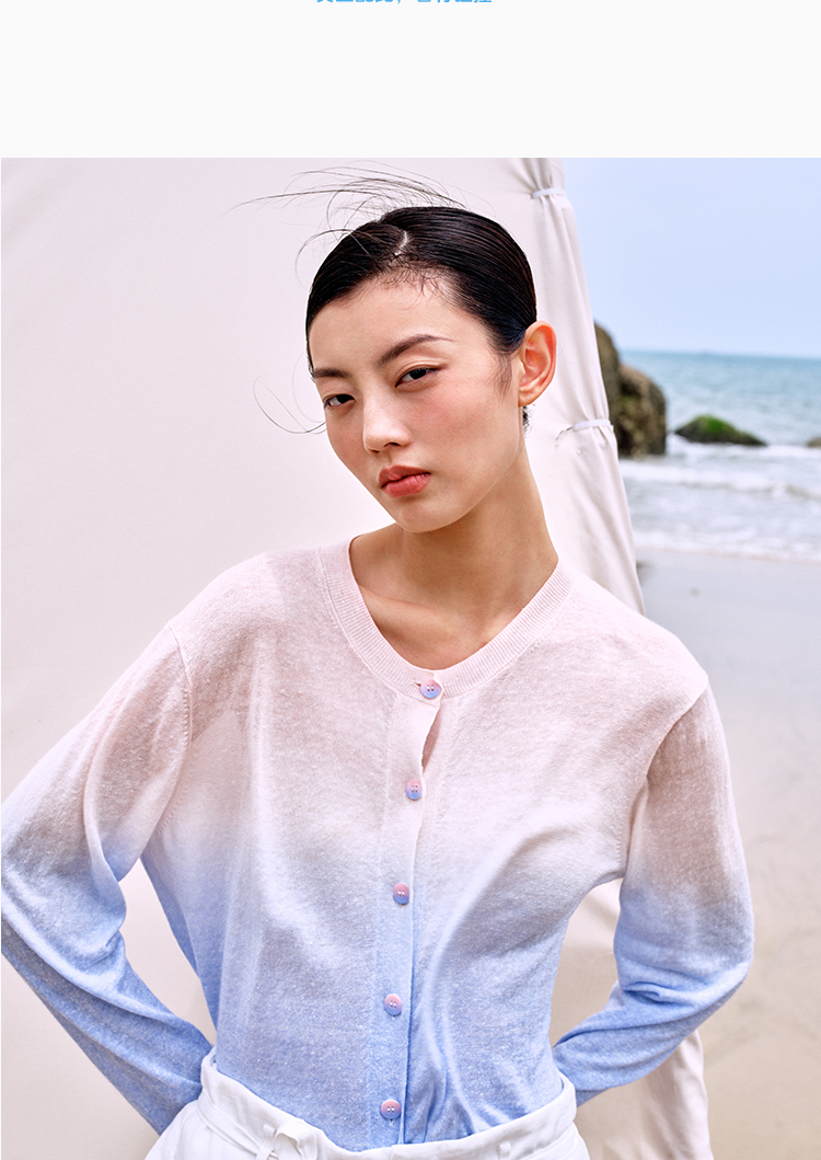 东黎 • 温柔的海风 山羊绒桑蚕丝亚麻女士吊染圆领开衫 5272