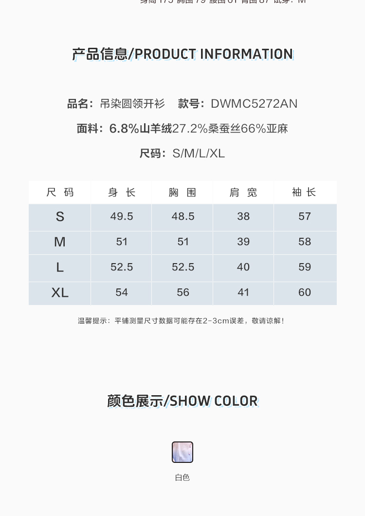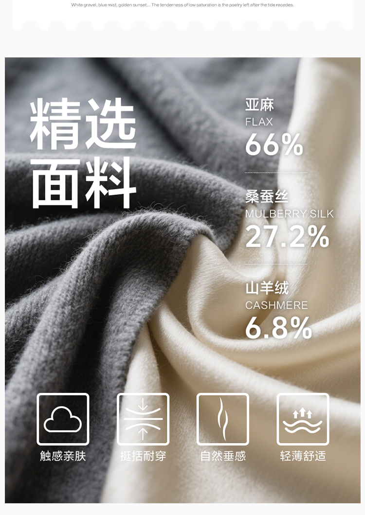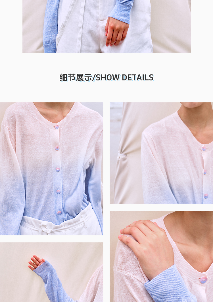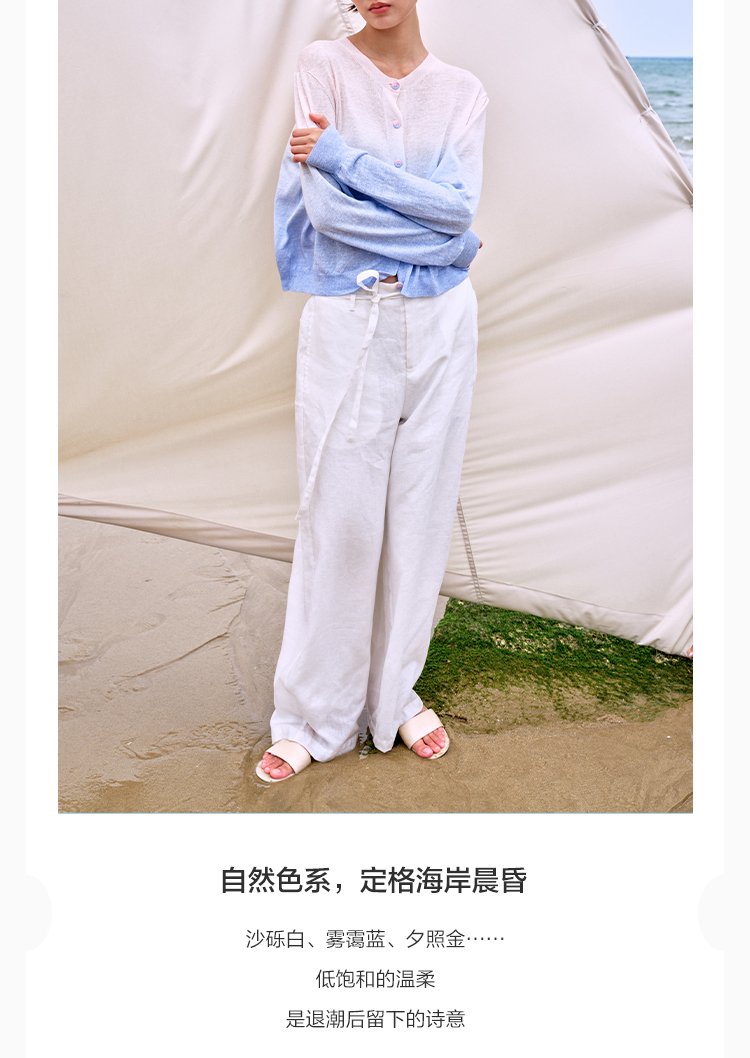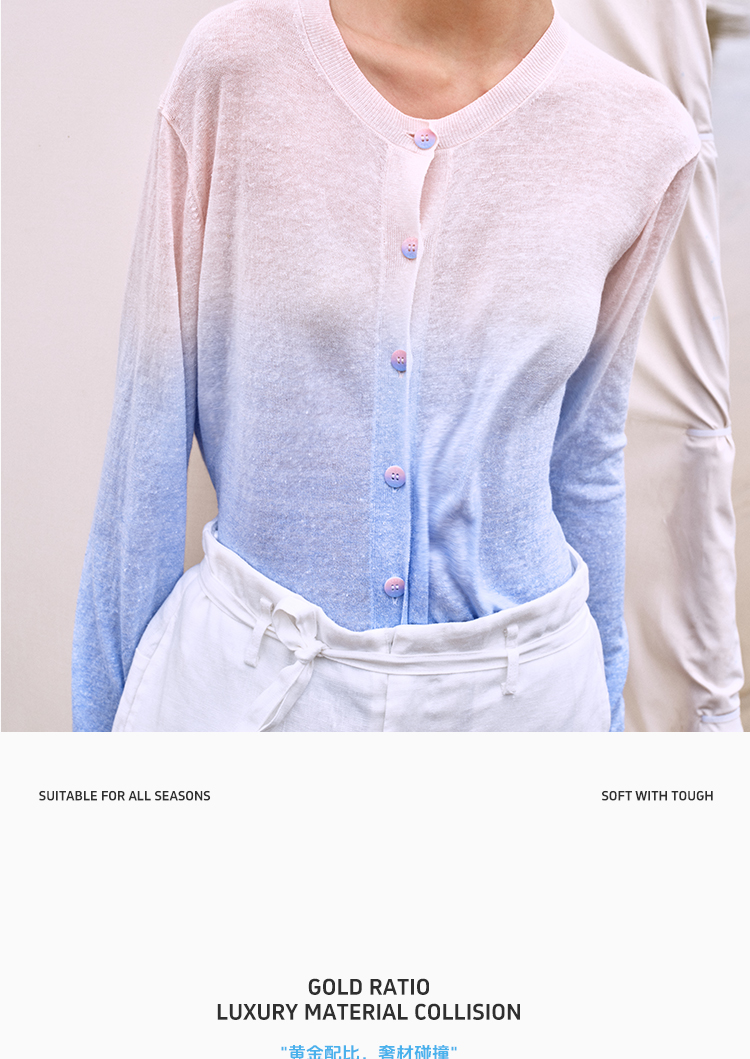 东黎 • 温柔的海风 山羊绒桑蚕丝亚麻女士吊染圆领开衫 5272