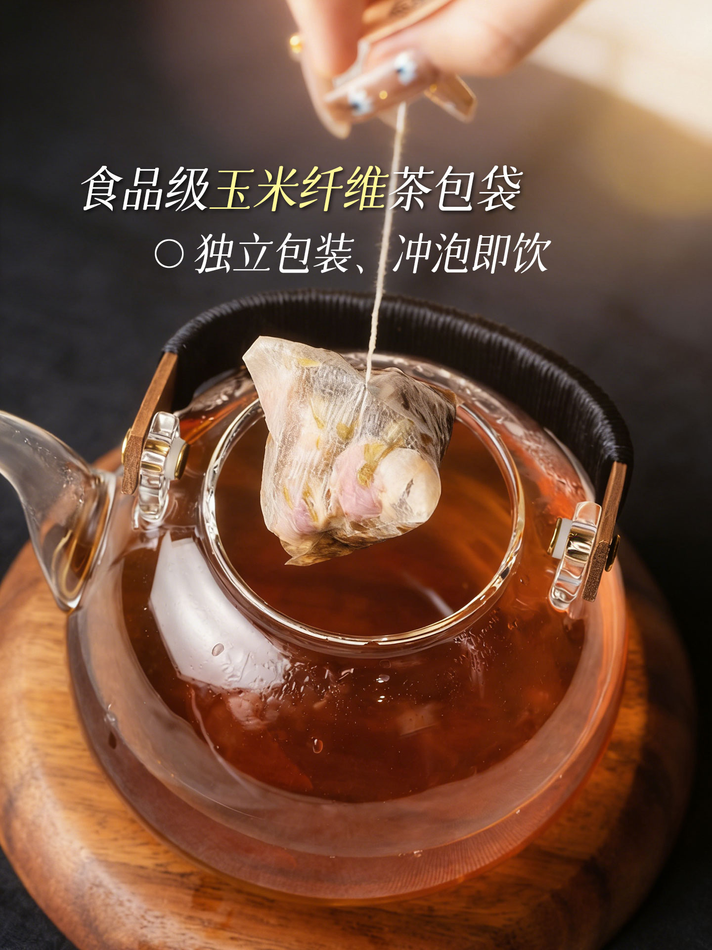 2、养生壶煮茶包放入壶中,加入冷水600ml左右待水温加热到100℃焖泡3-5分钟,即可享用