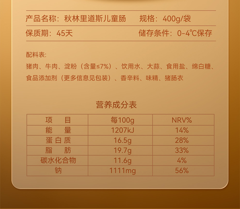 秋林里道斯儿童肠-袋装400g