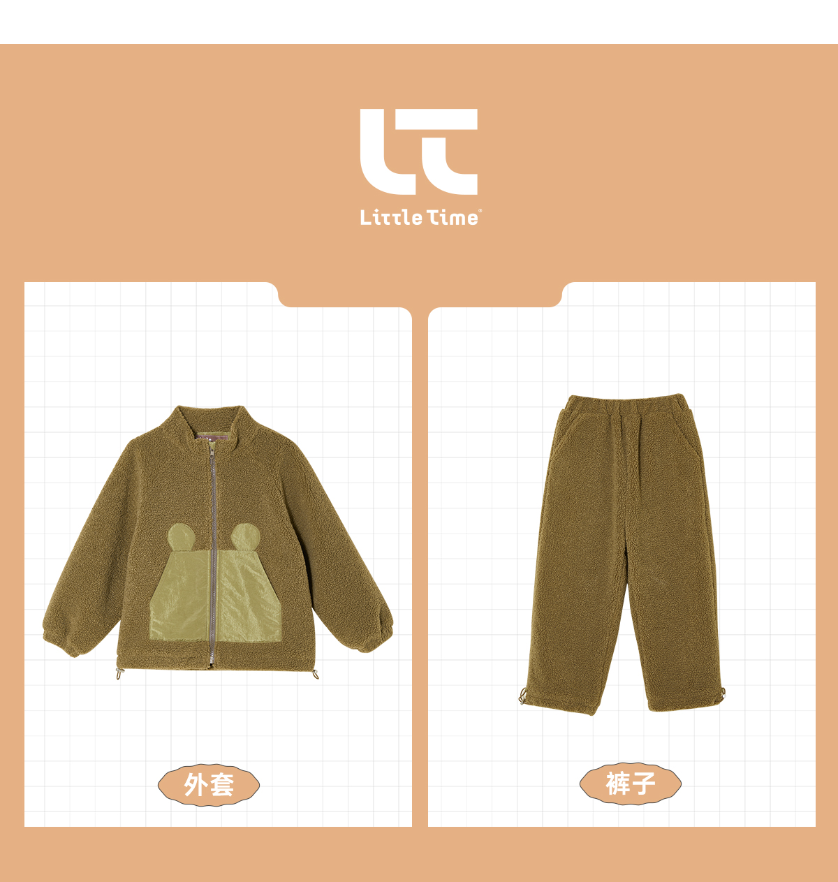 littletime男童套装秋冬装加绒加厚2021新款泰迪绒儿童保暖两件套