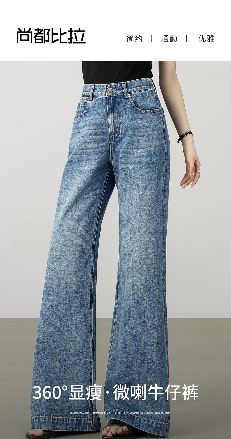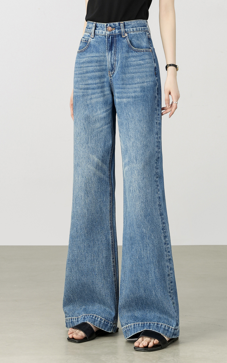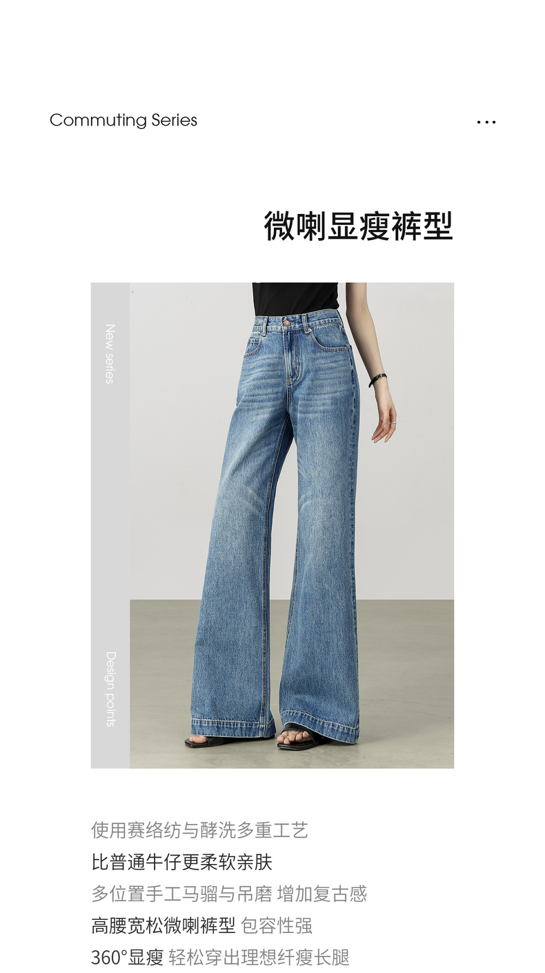 【内购】【显瘦高】活力丹宁复古水洗通勤高腰宽松微喇牛仔长裤-W53NE2047