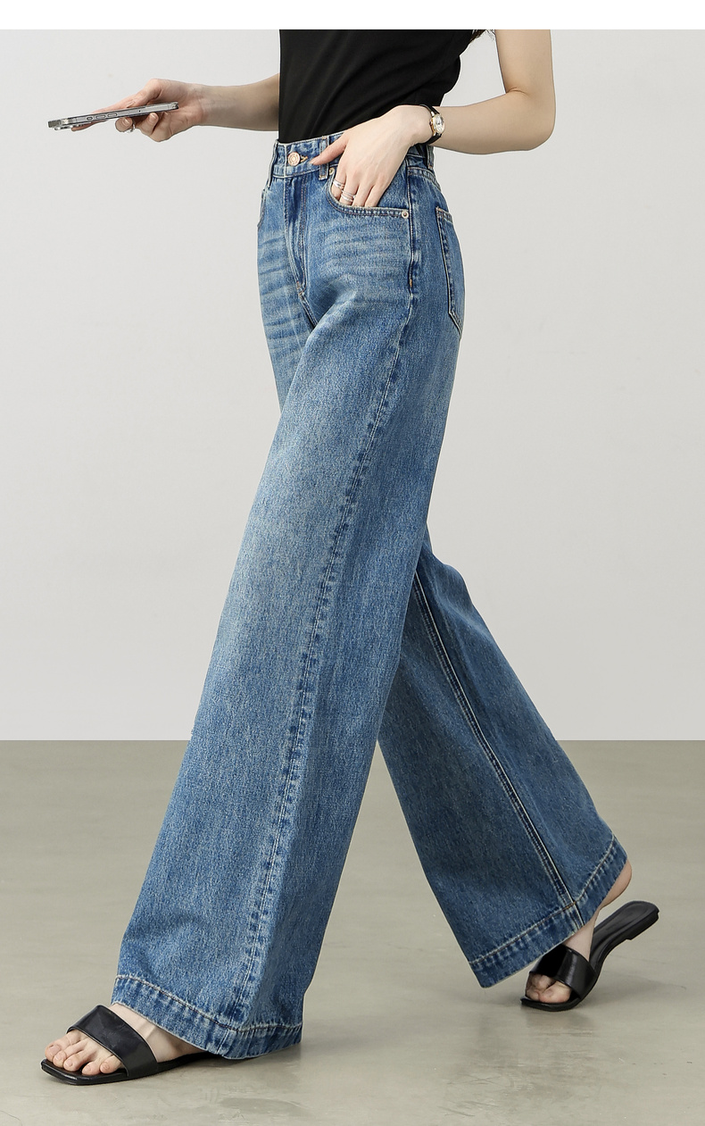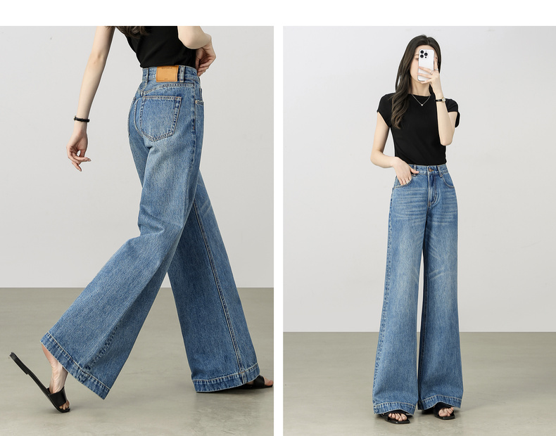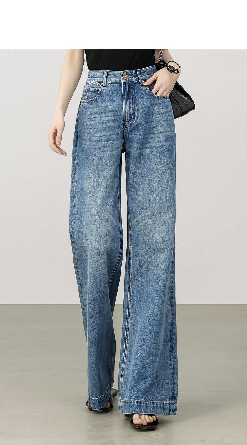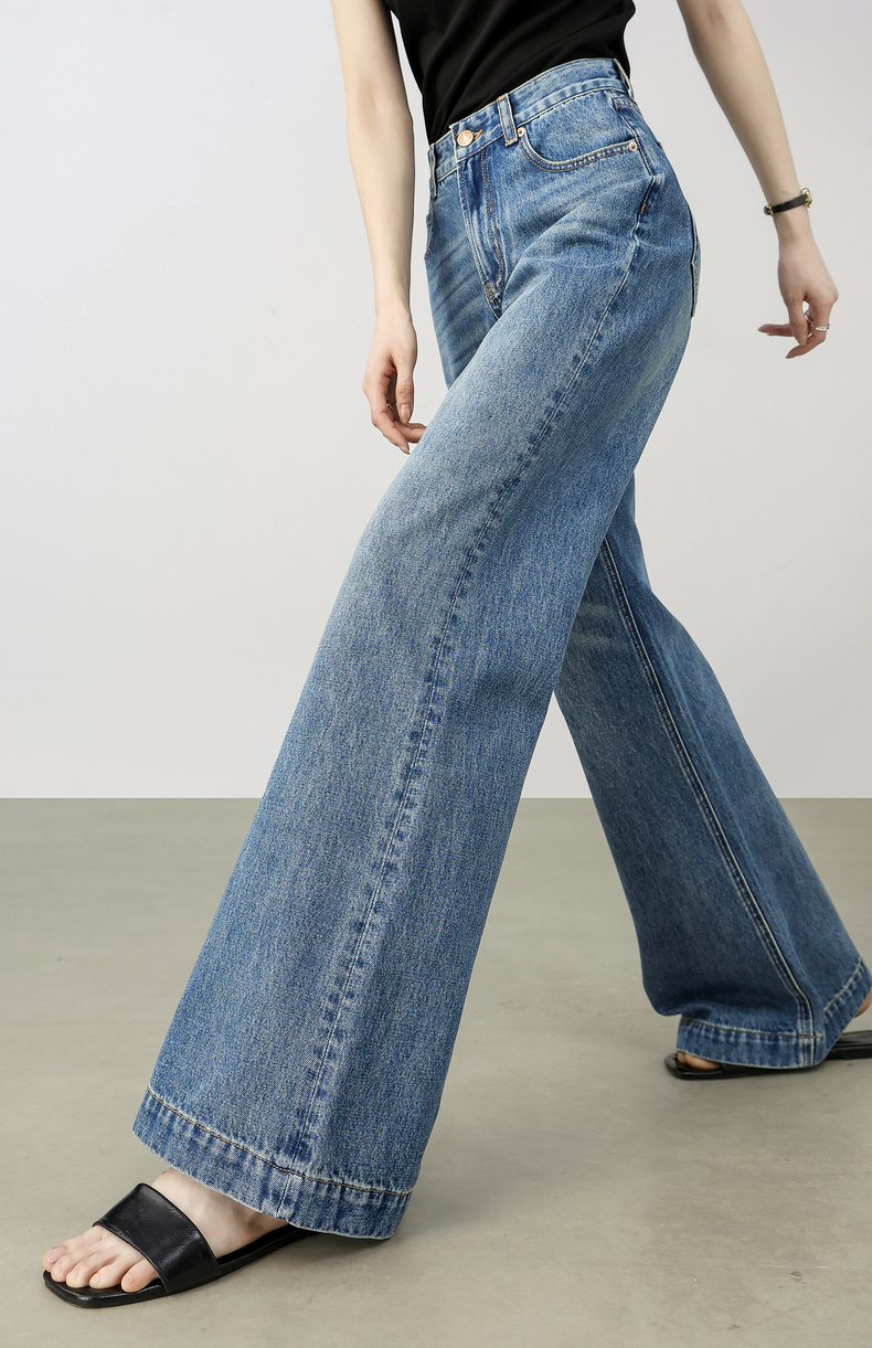 【内购】【显瘦高】活力丹宁复古水洗通勤高腰宽松微喇牛仔长裤-W53NE2047