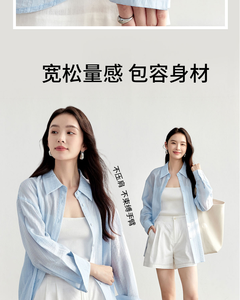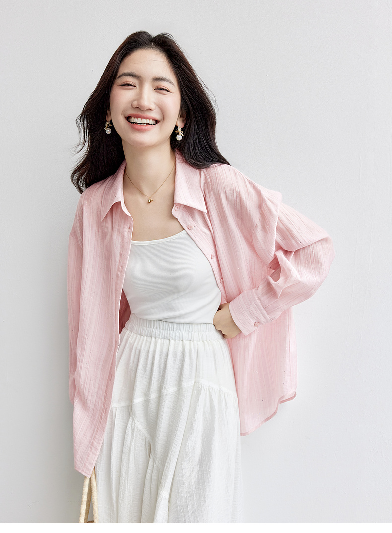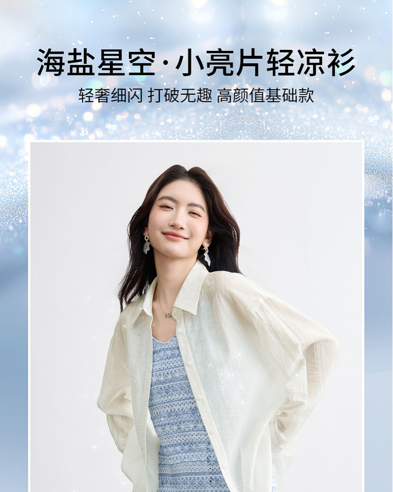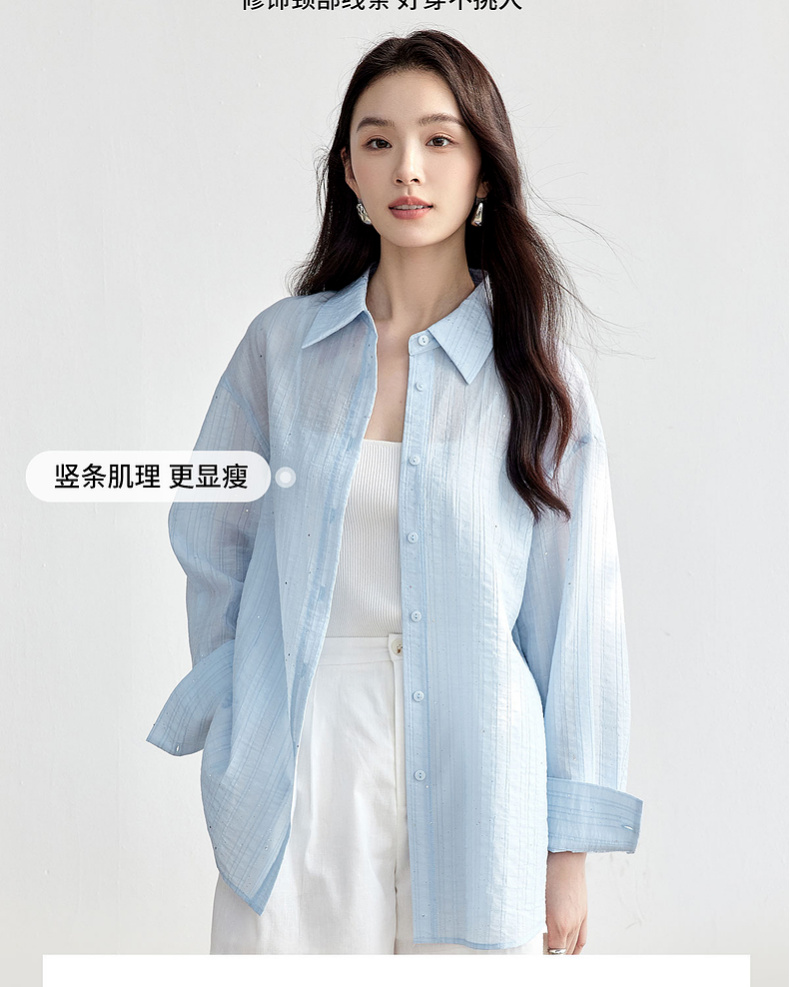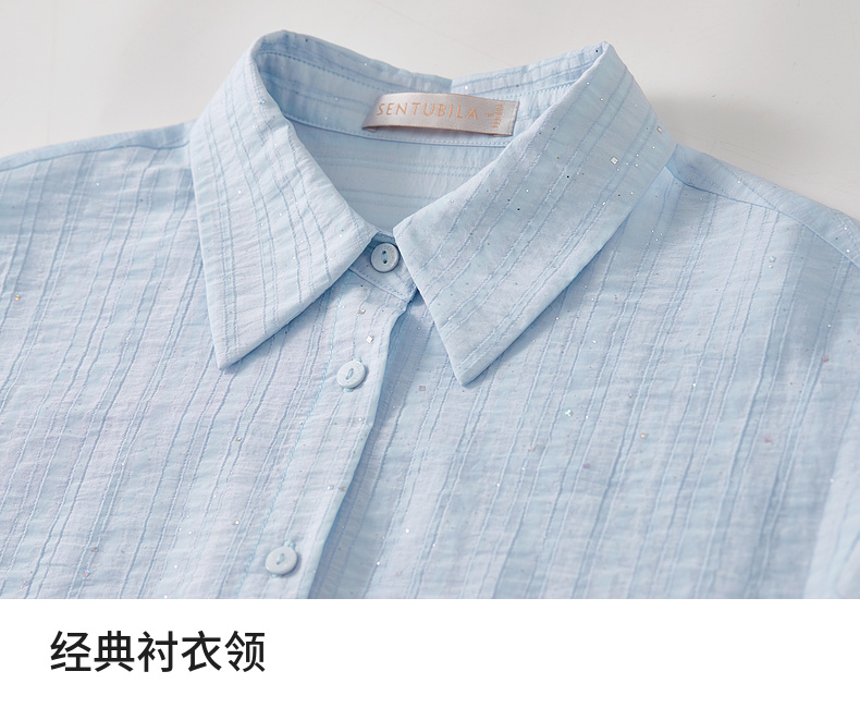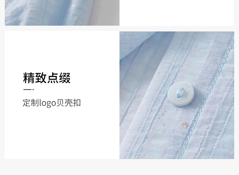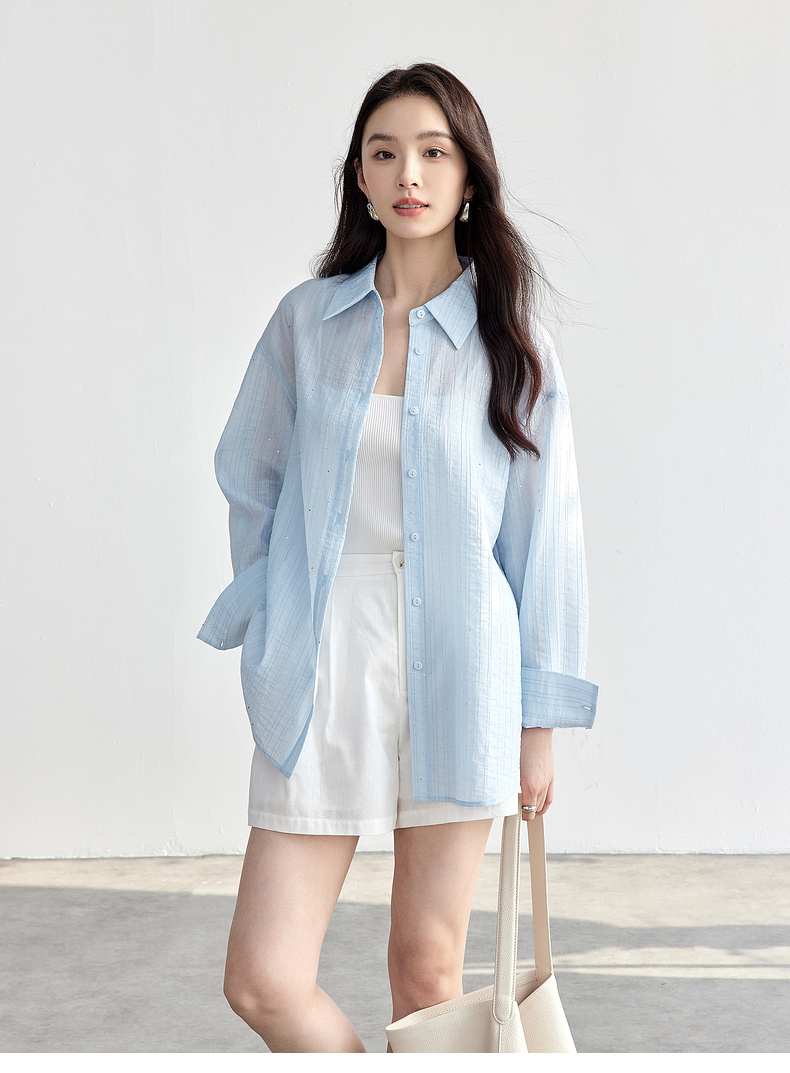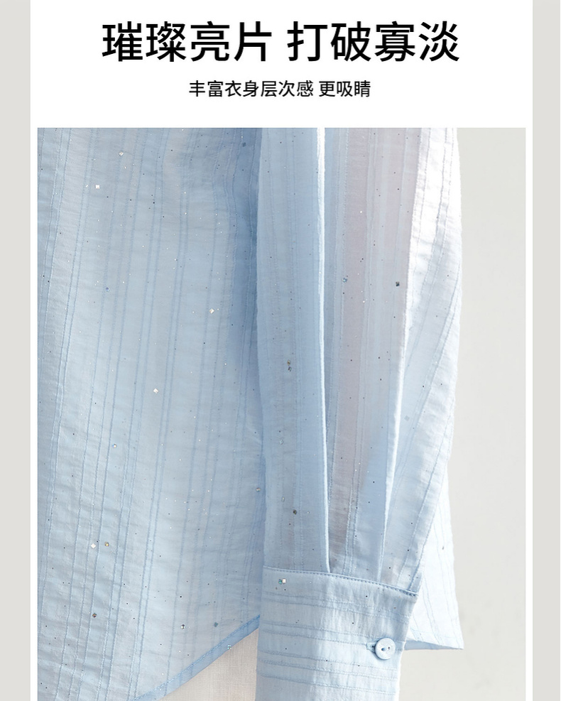 【尚都比拉】遇见夏日海盐耶耶蓝色衬衫慵懒防晒薄款外穿亮片上衣-151C57974