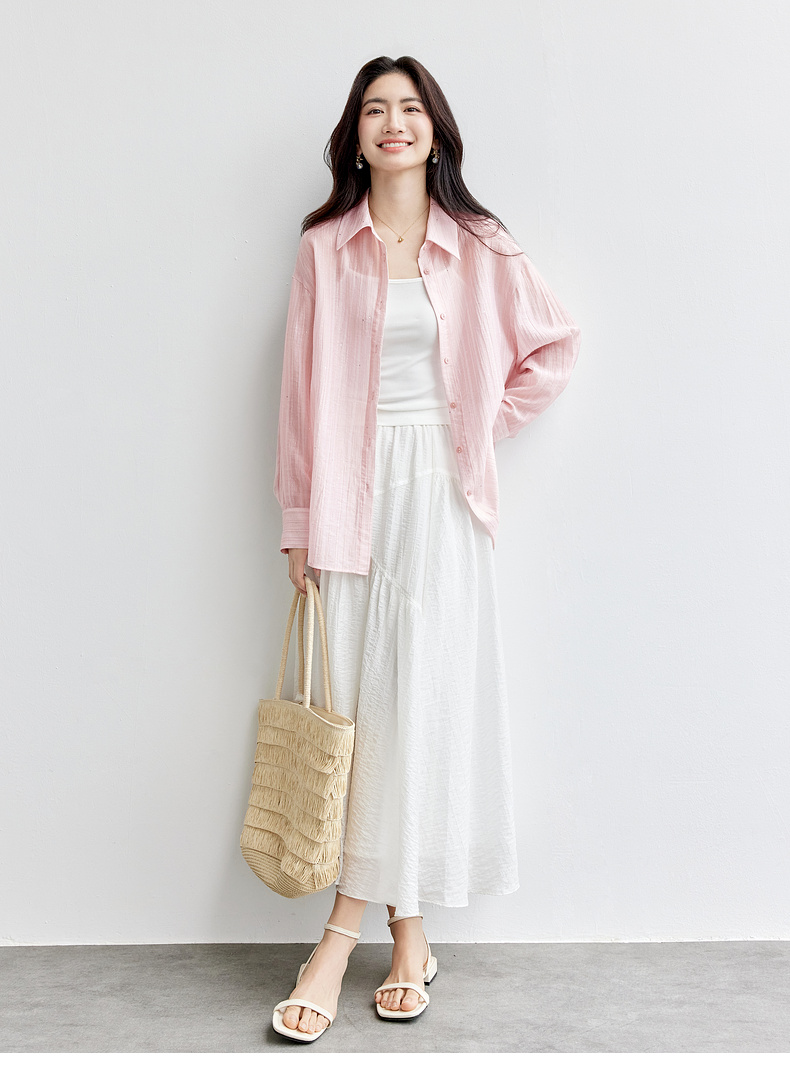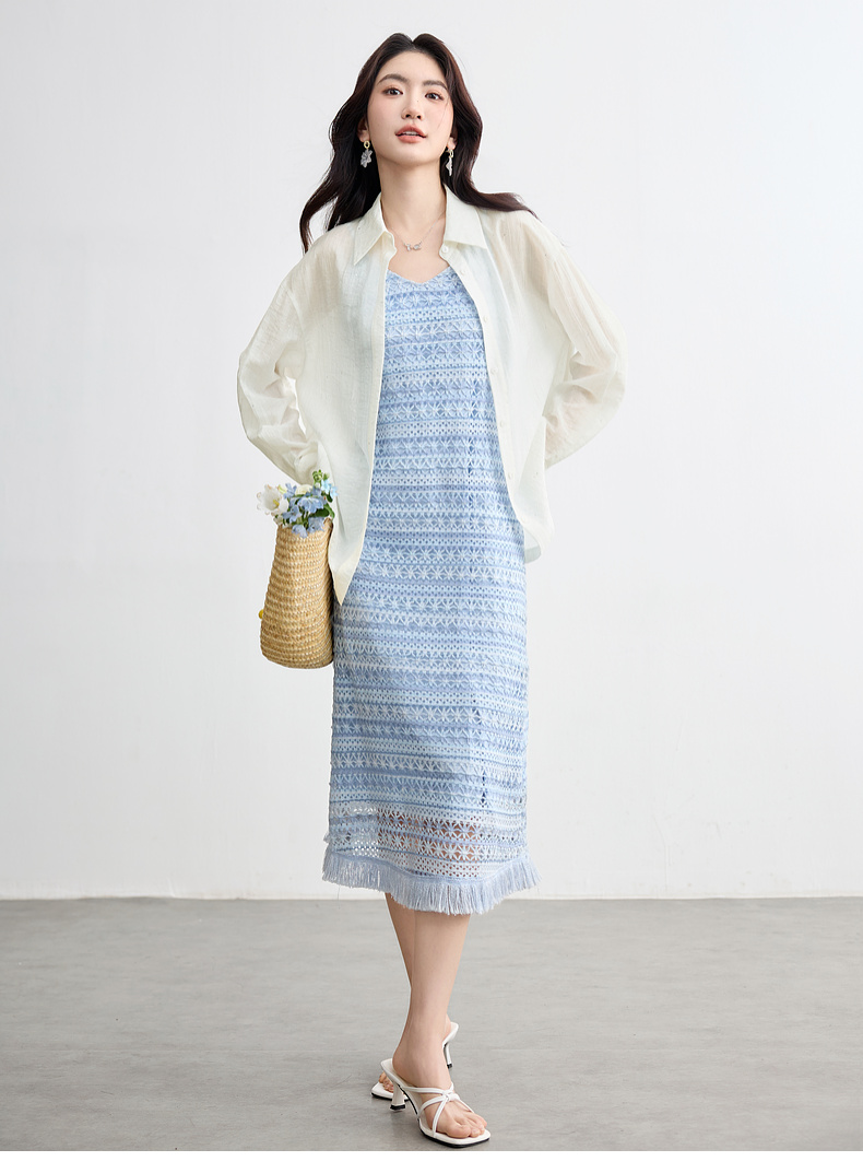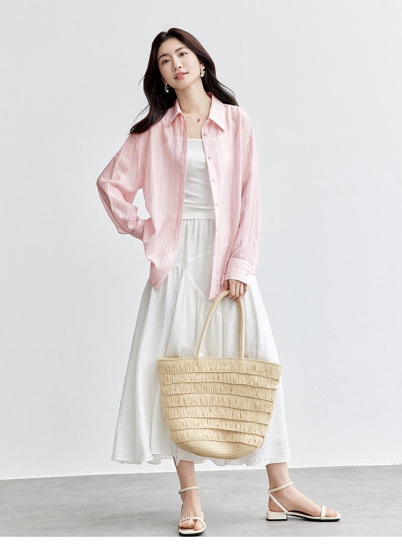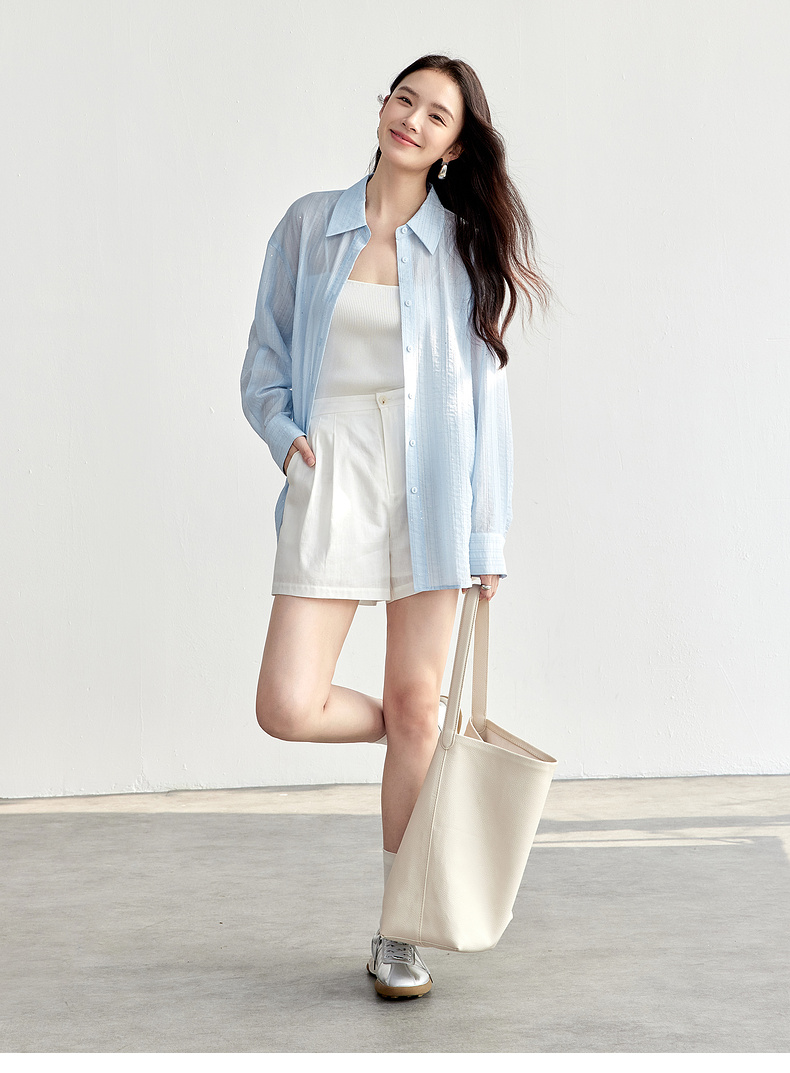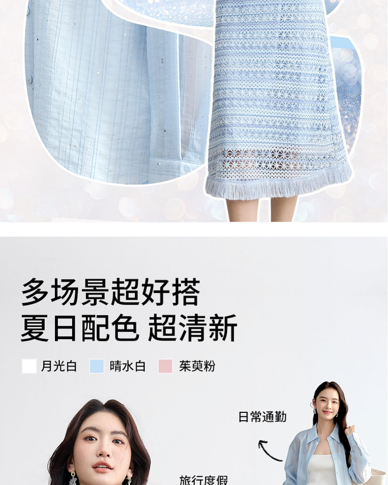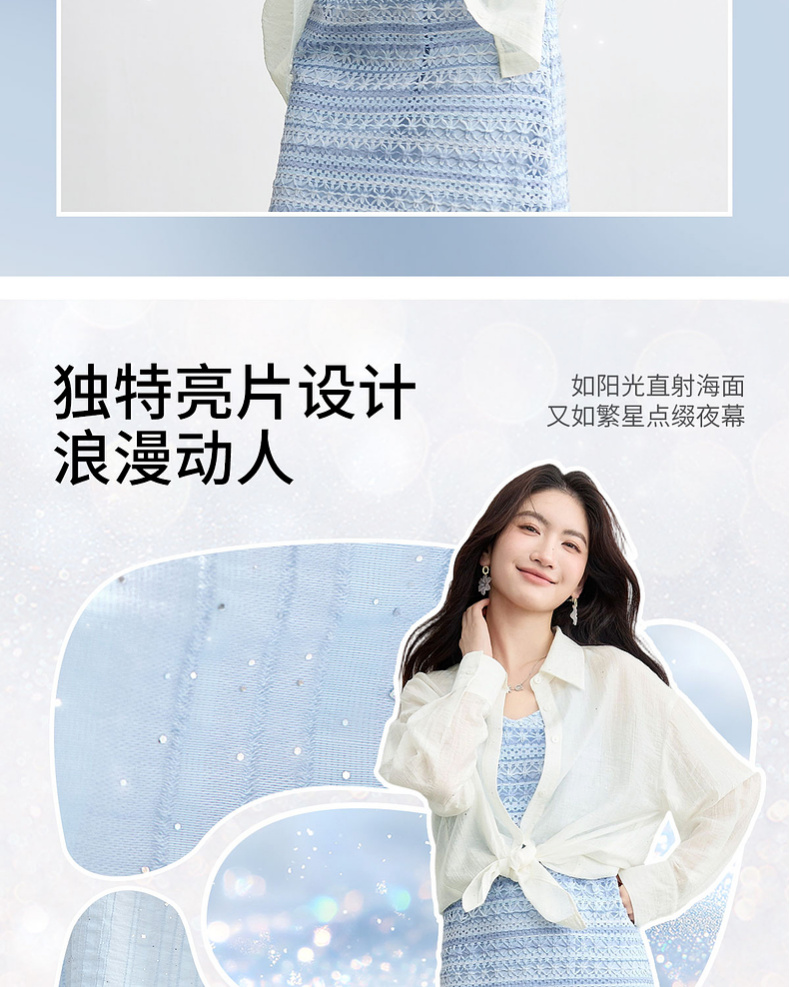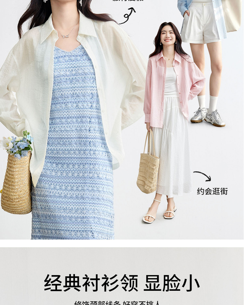 【尚都比拉】遇见夏日海盐耶耶蓝色衬衫慵懒防晒薄款外穿亮片上衣-151C57974