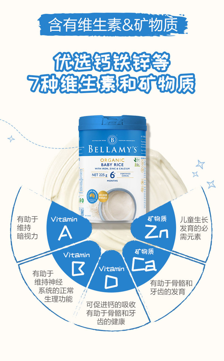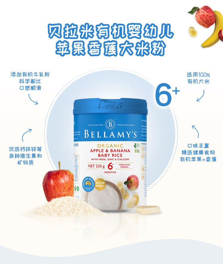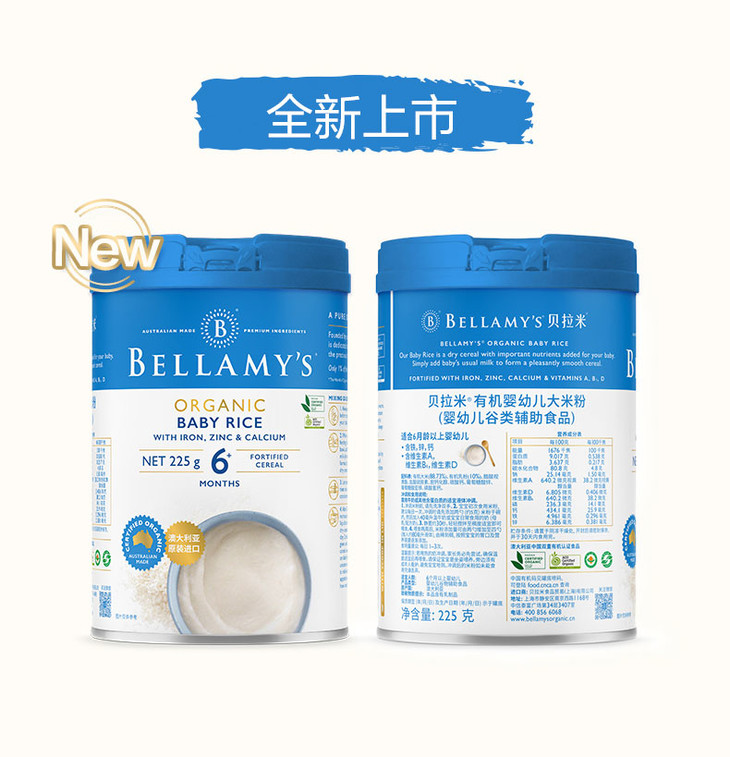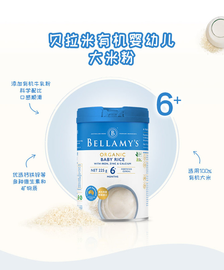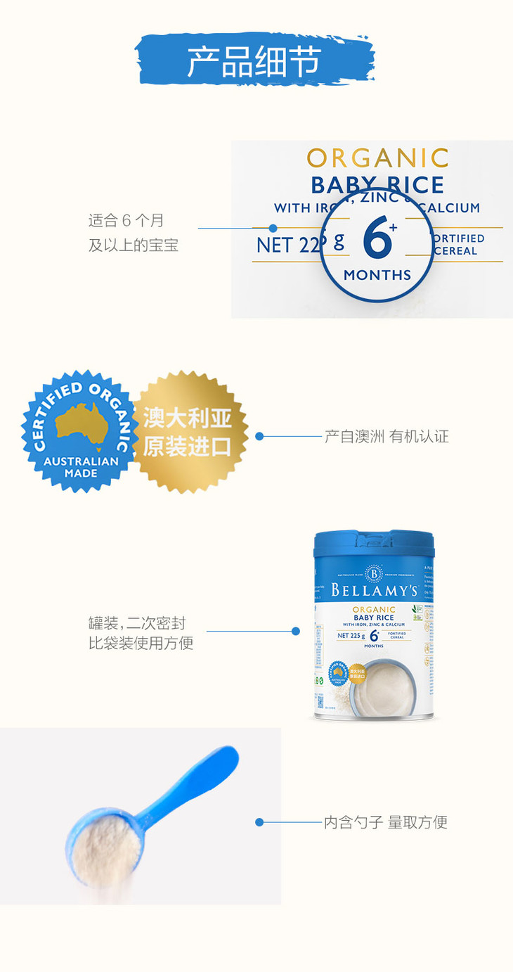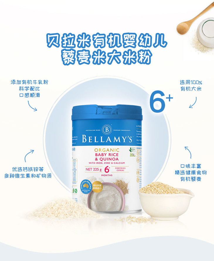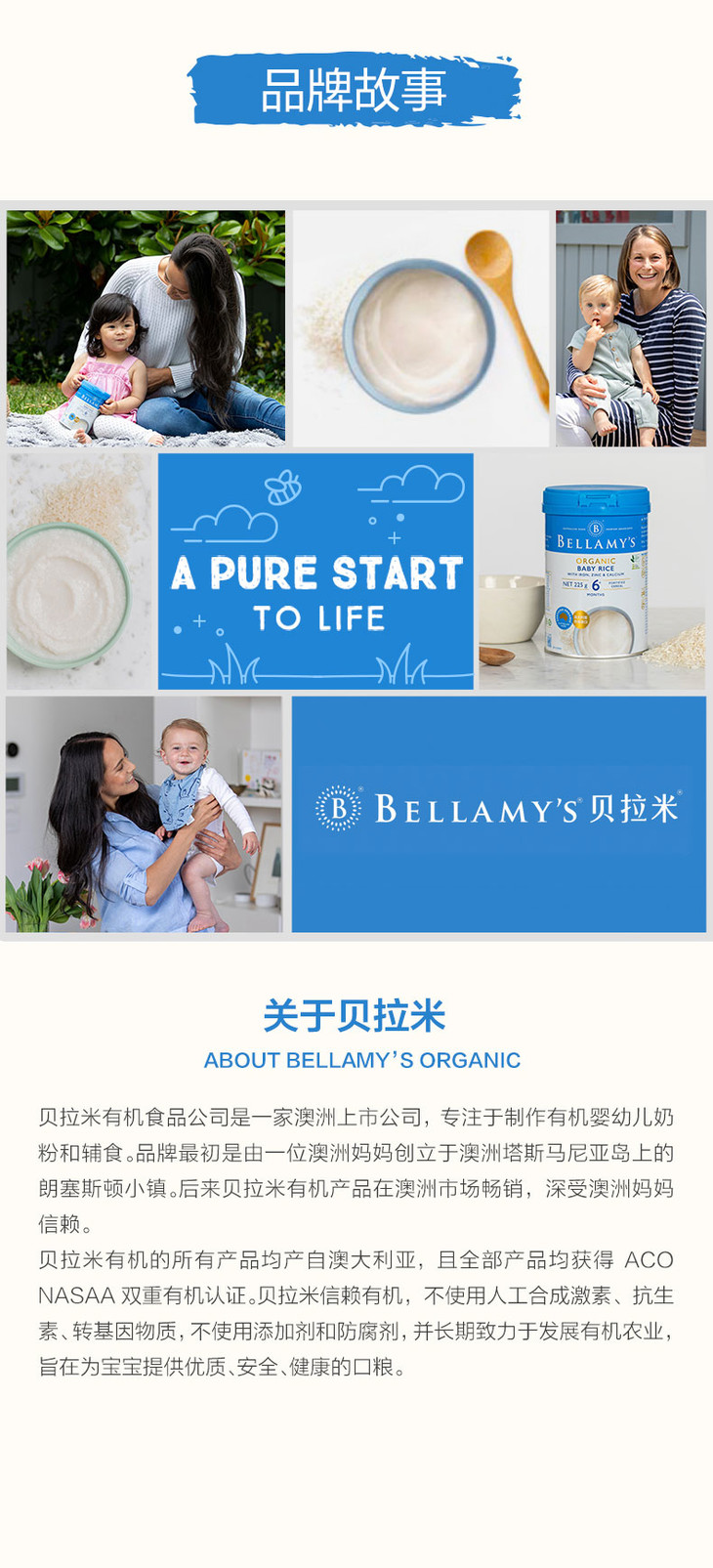 国行版Bellamy’s贝拉米宝宝辅食有机婴幼儿大米粉225g