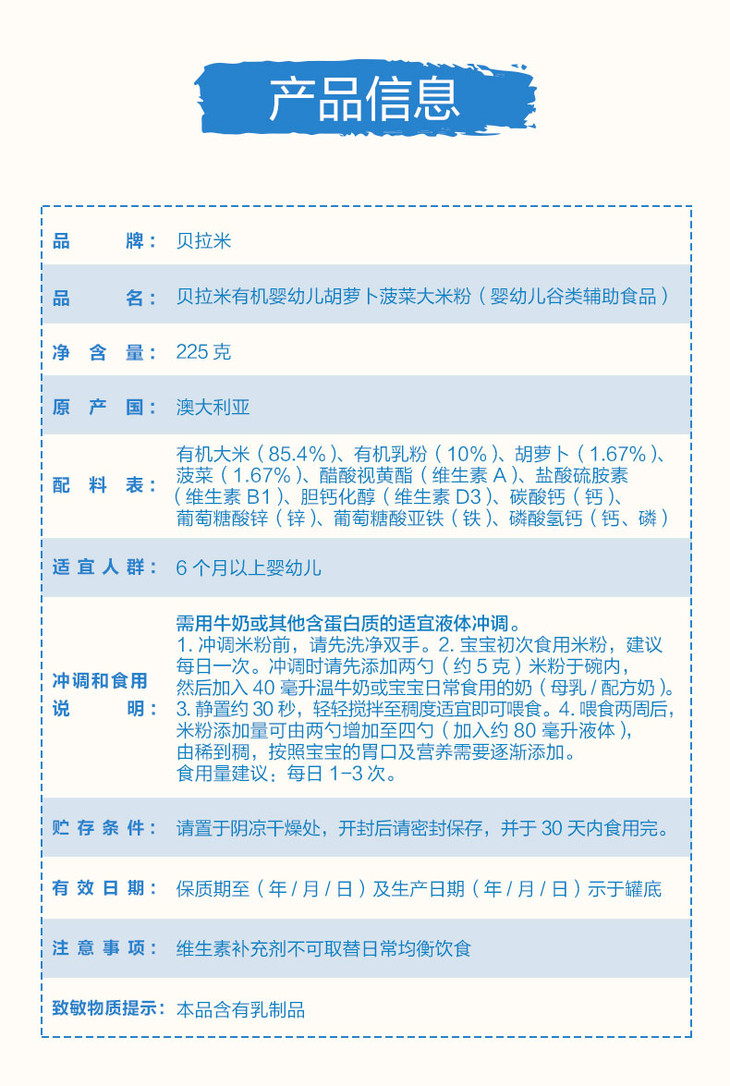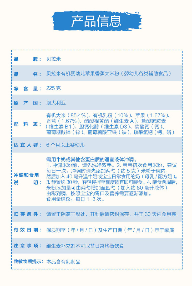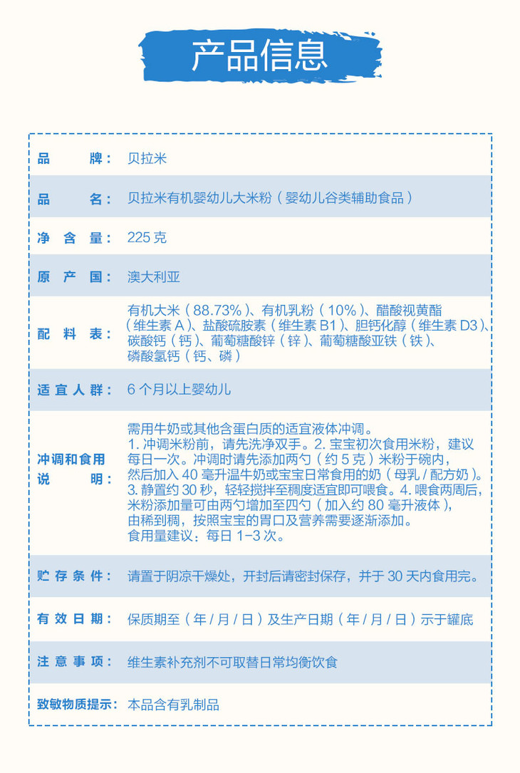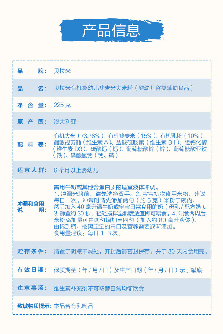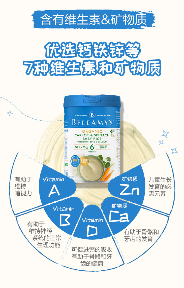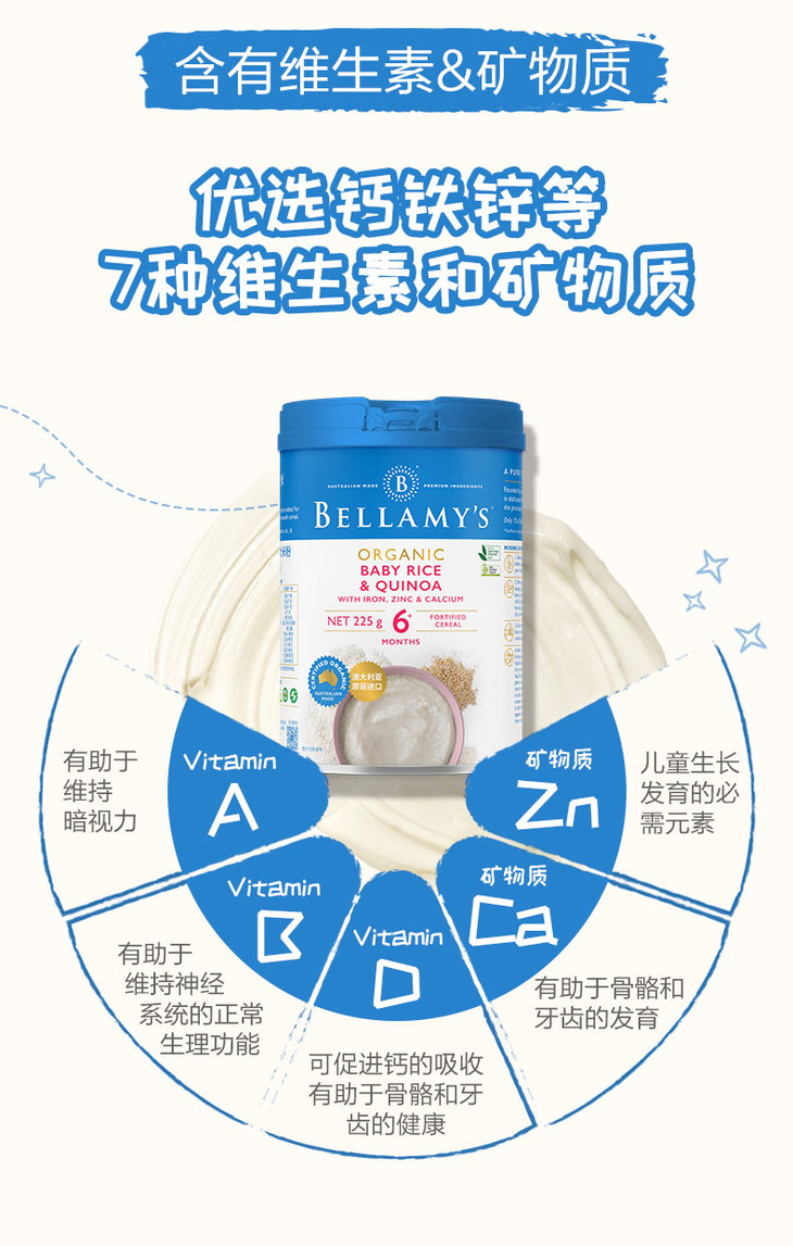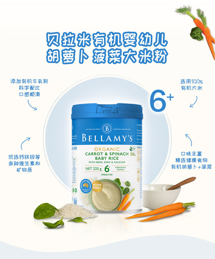 国行版Bellamy’s贝拉米宝宝辅食有机婴幼儿大米粉225g