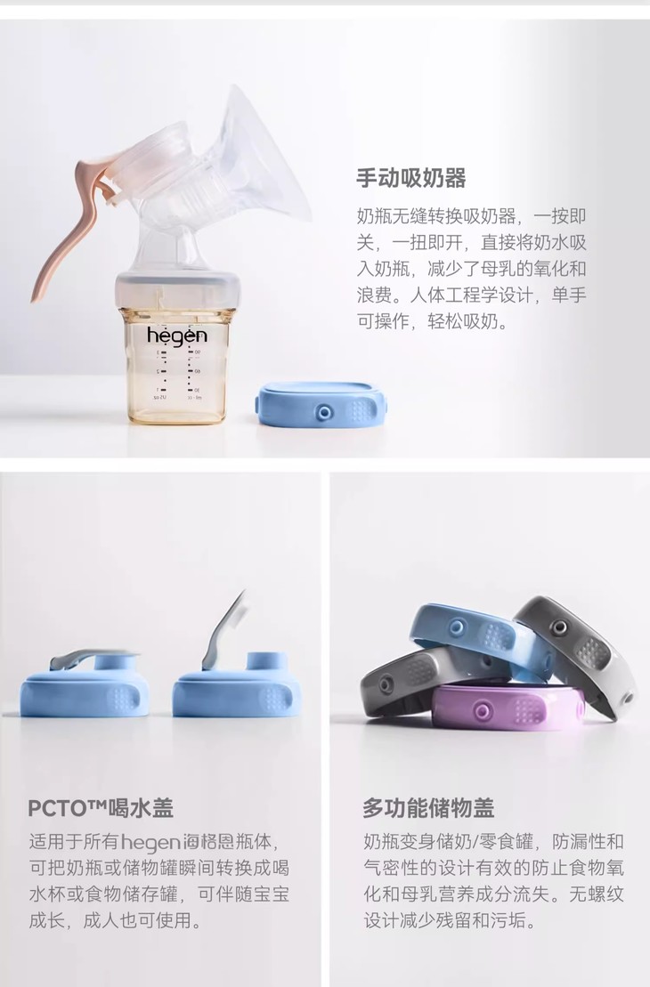 Hegen儿童宽口径PPSU亲子330ml喝水杯(灰色)