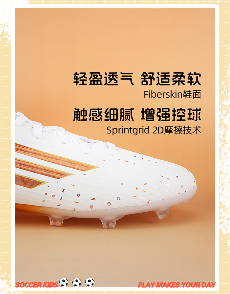 小李子阿迪达斯儿童足球鞋F50萨拉赫FG/MG混钉训练鞋男女孩KH9356