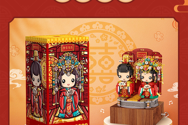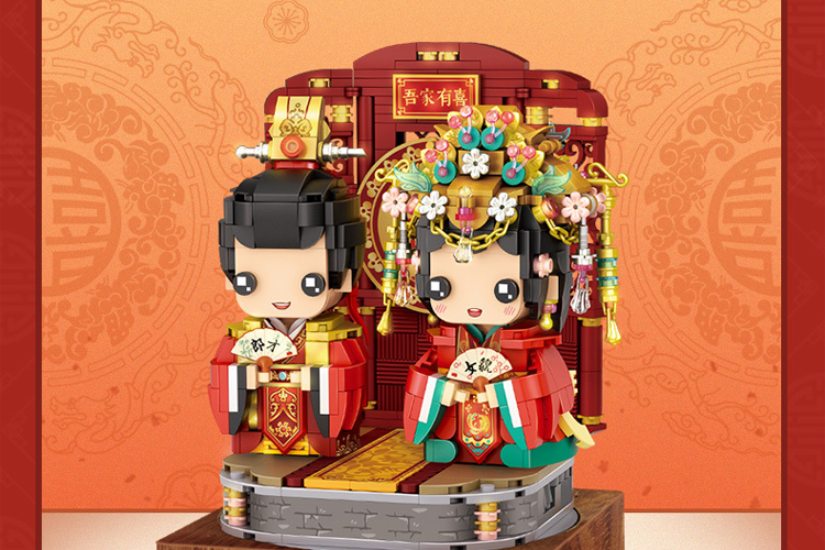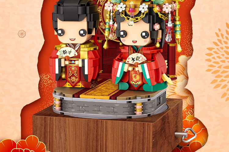 俐智新郎新娘音乐盒1227有声婚礼八音盒小颗粒拼装积木玩具模型礼物