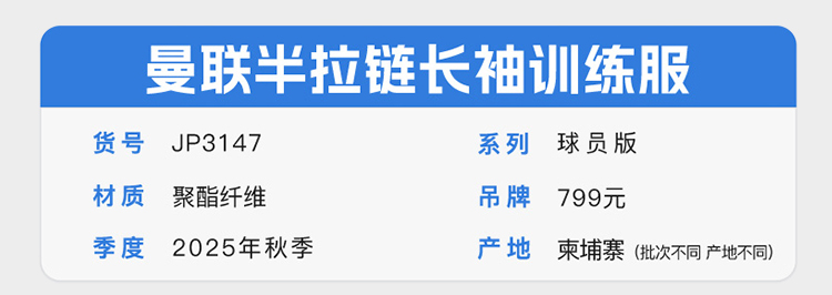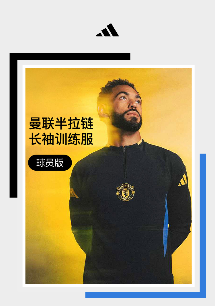 小李子ADIDAS阿迪达斯曼联球员版半拉链长袖训练服成人男JP3147