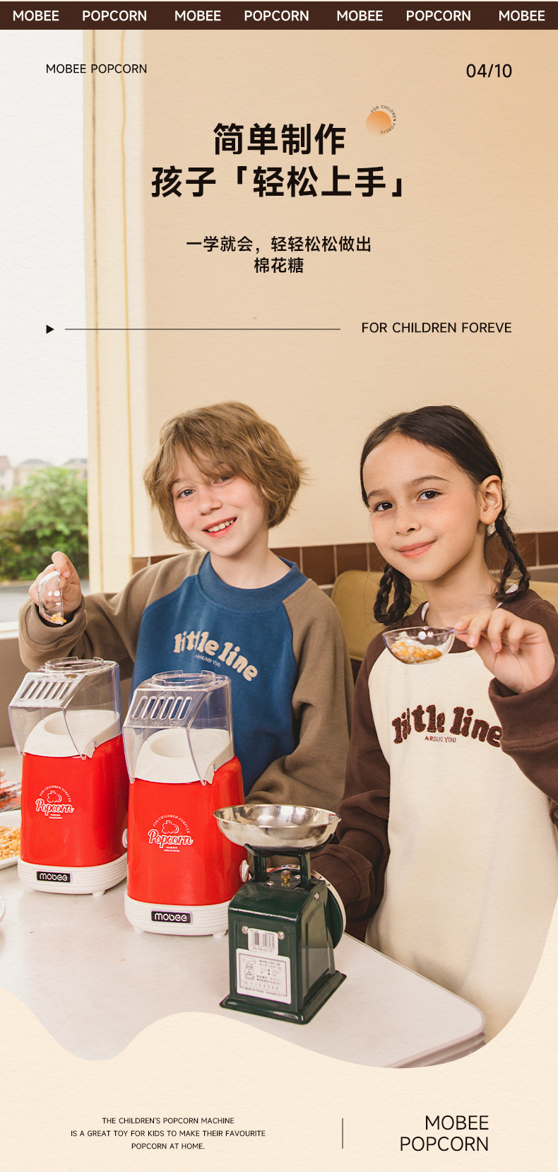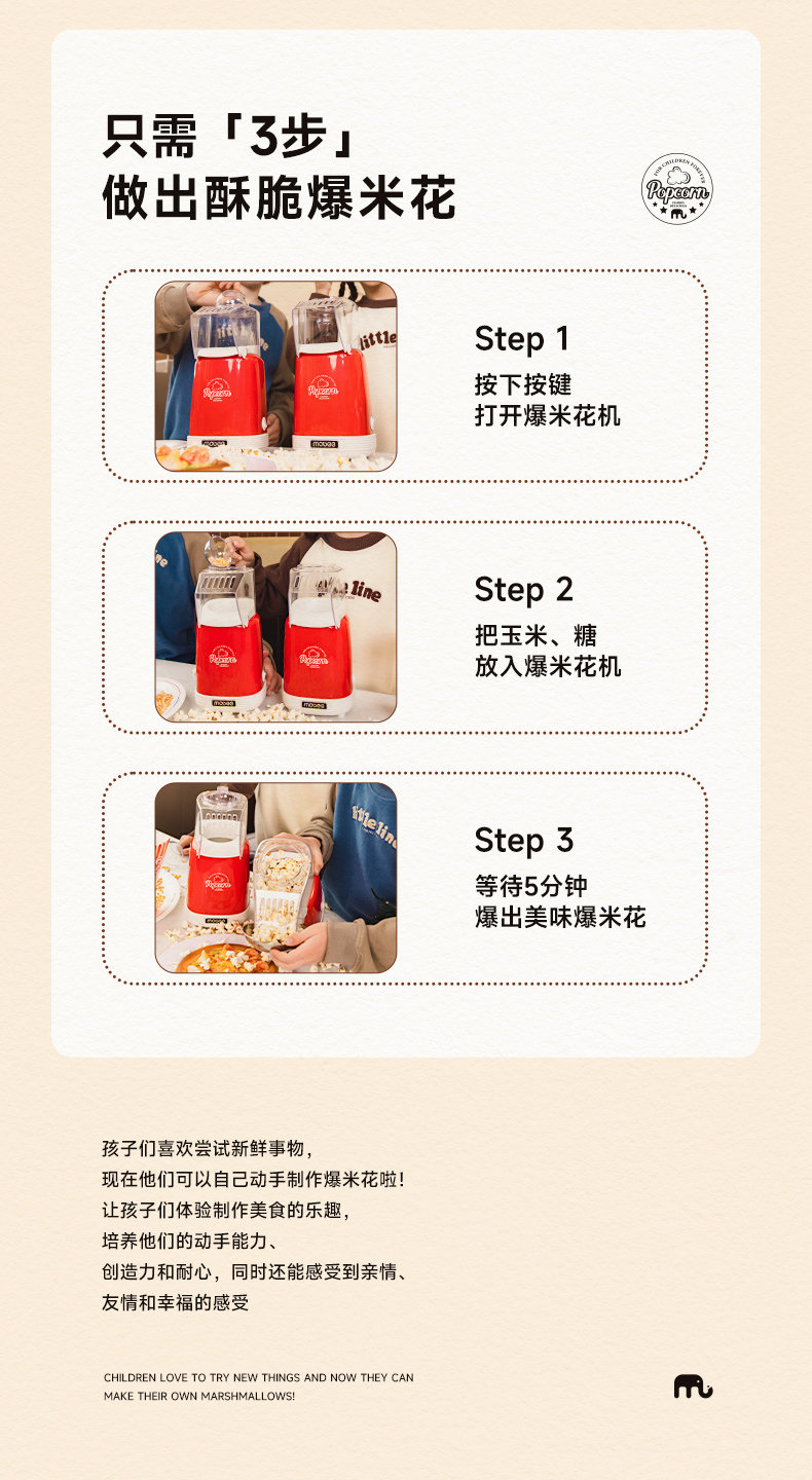mobee爆米花机儿童过家家玩具男孩女孩幼儿园益智生日礼物