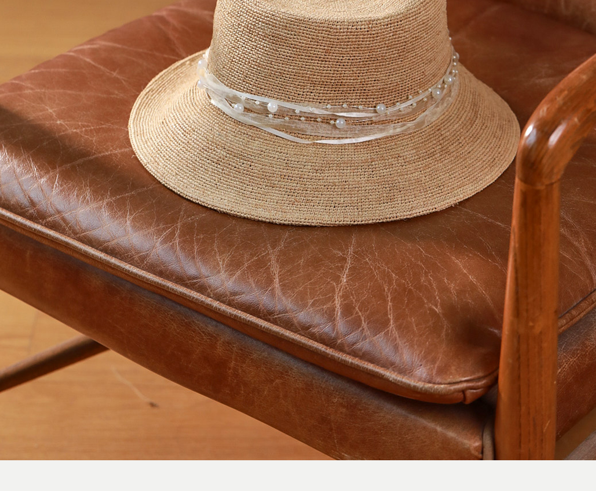 牧衣游 文艺复古拉菲草帽子休闲百搭遮阳 青燇【不支持会员折】