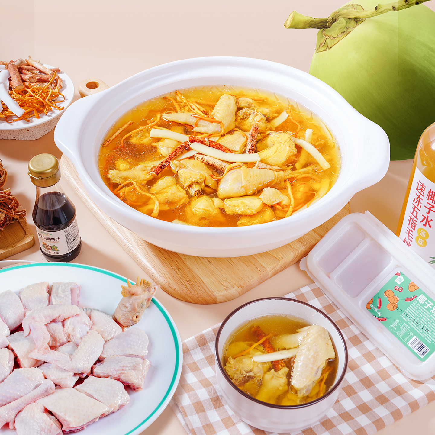 【海南】五指毛桃椰子鸡套餐 粤味明星食材 白有天然椰香 餐厅级美味空运到家