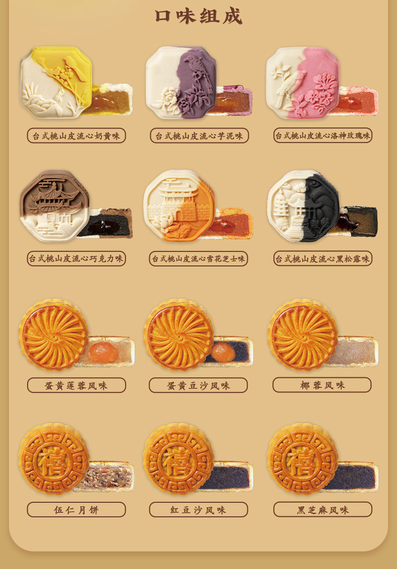 【18饼12味镂空烫金礼盒】禧全斋中秋节月饼礼盒装 老式五仁广式蛋黄莲蓉桃山皮流心送礼礼盒