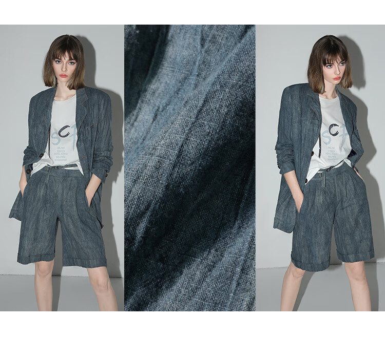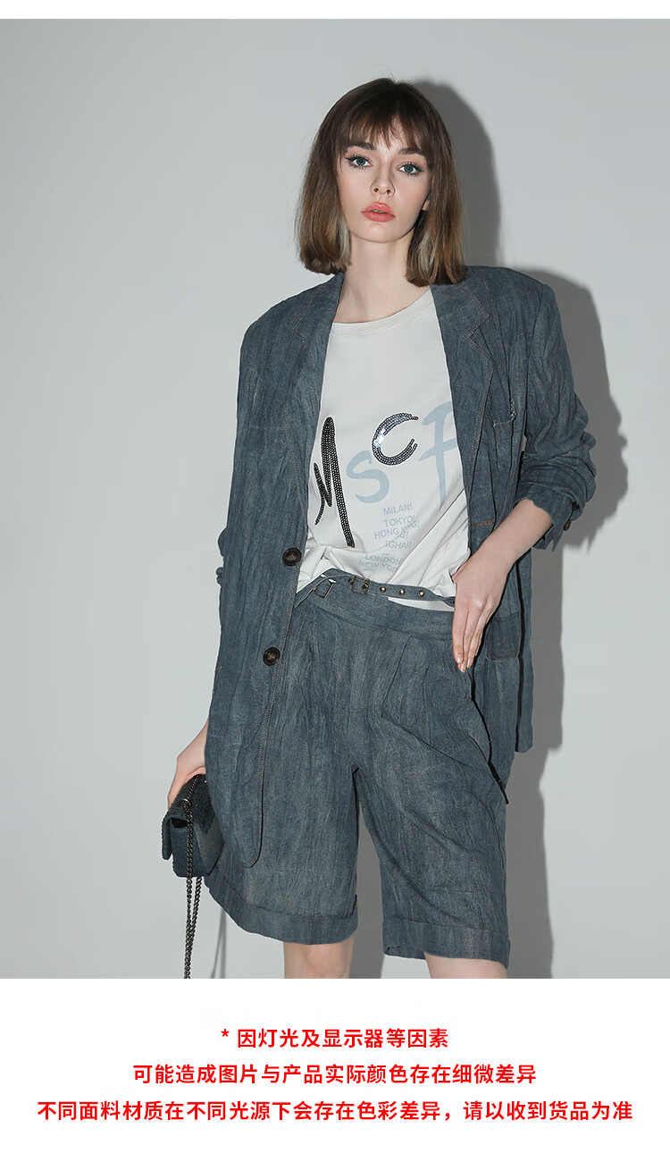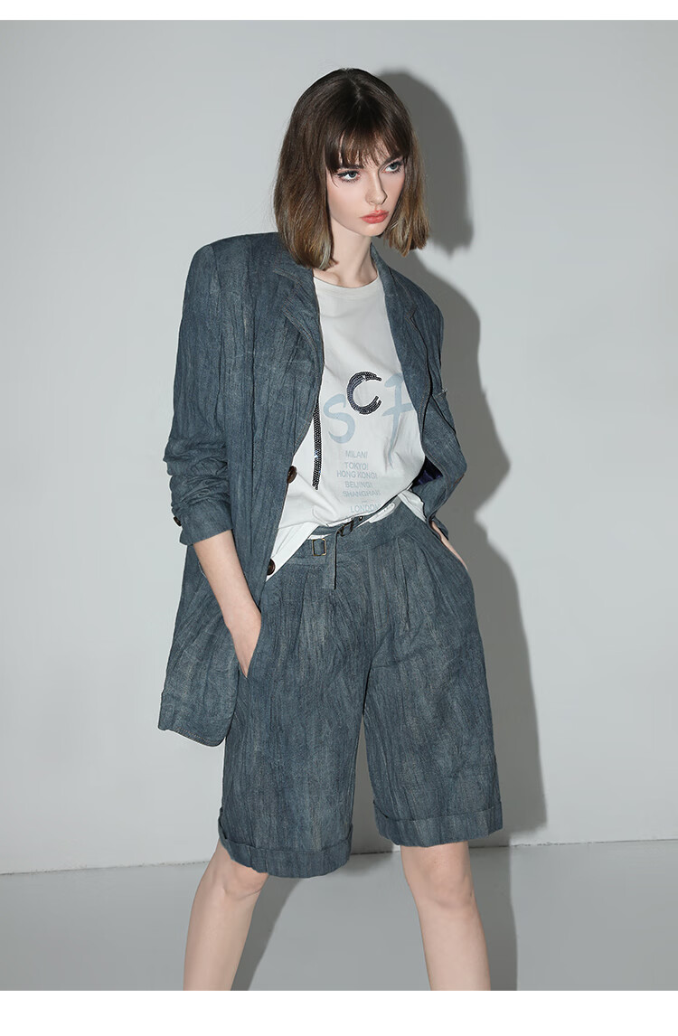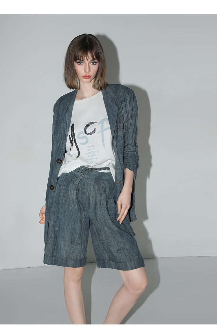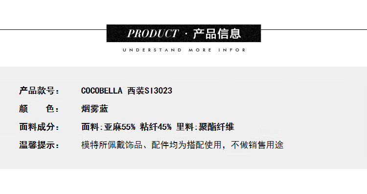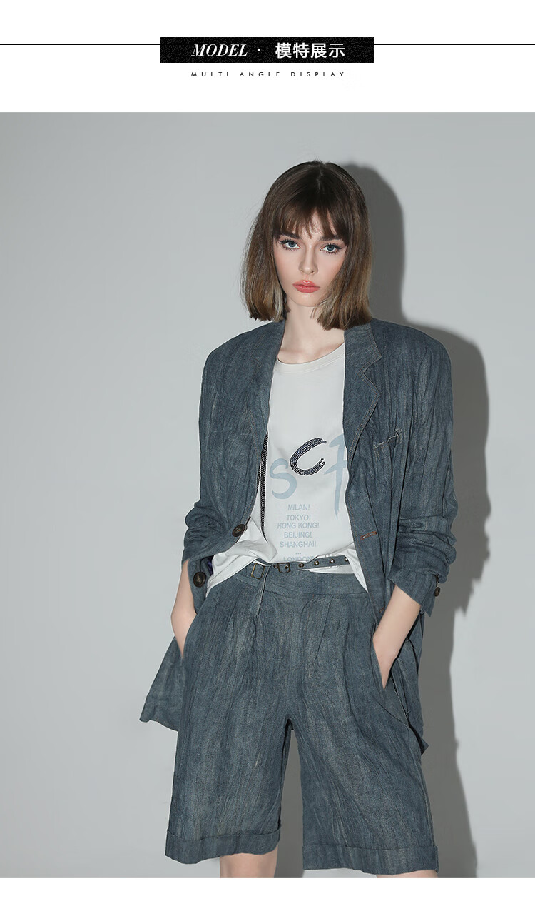 COCOBELLA砂洗炒色亚麻西装春夏松弛感穿搭牛仔色毛边外套SI3023