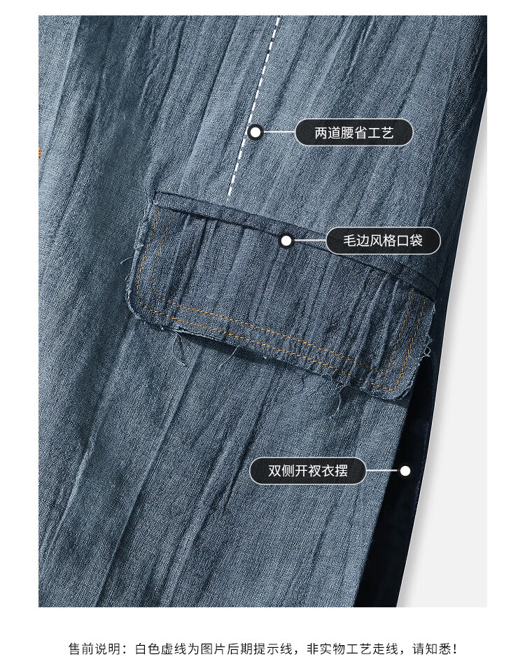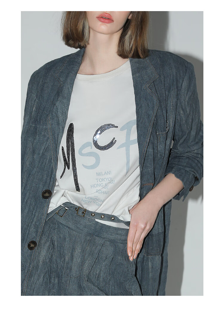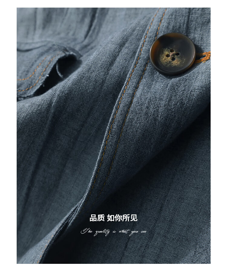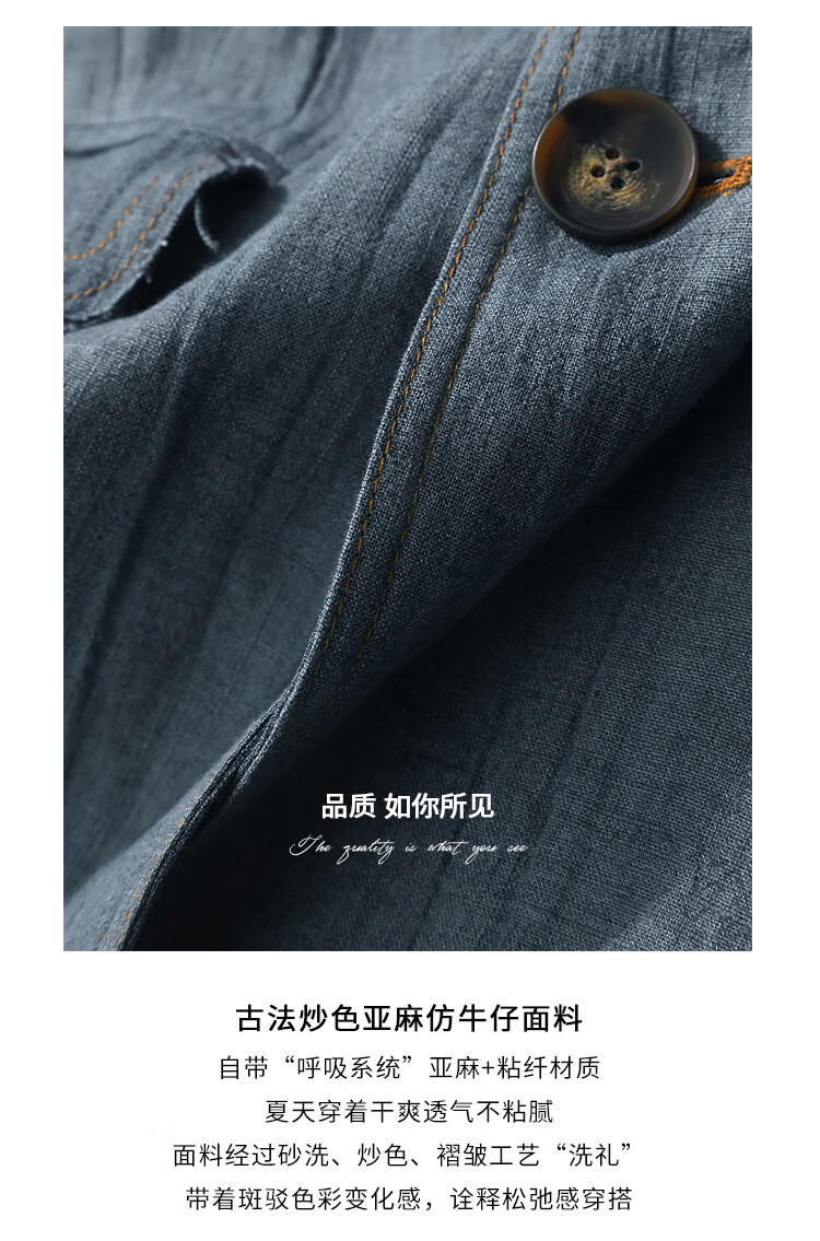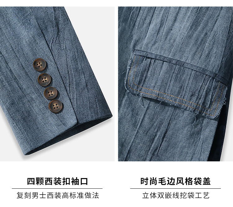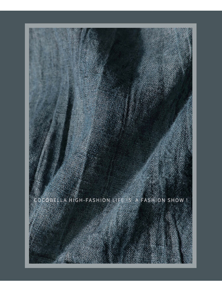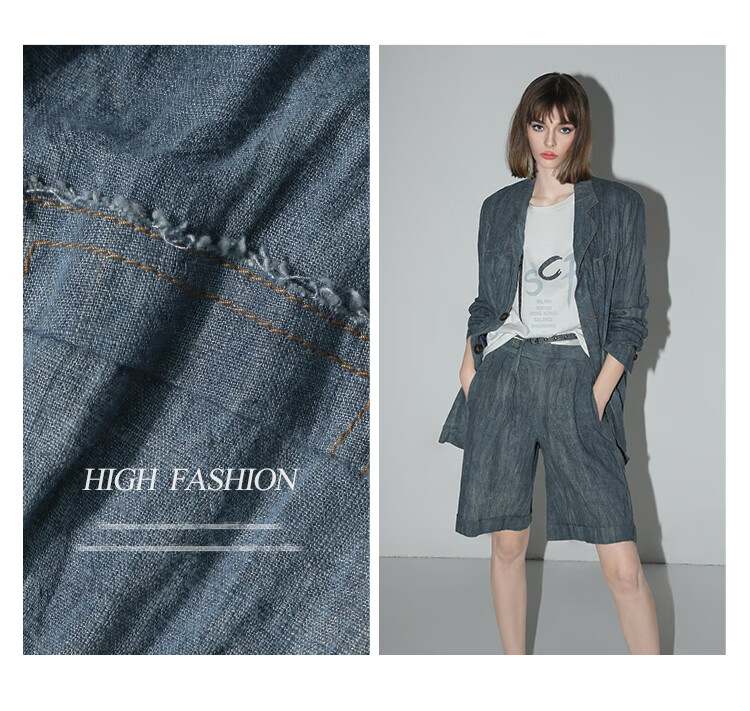 COCOBELLA砂洗炒色亚麻西装春夏松弛感穿搭牛仔色毛边外套SI3023