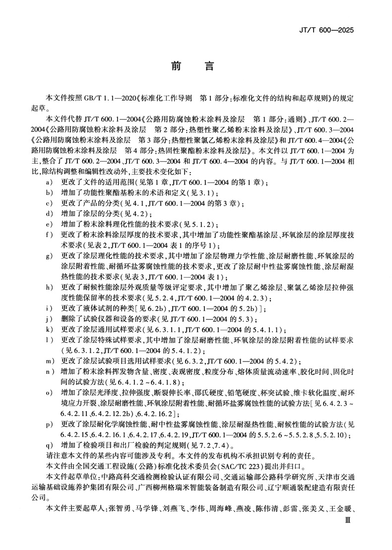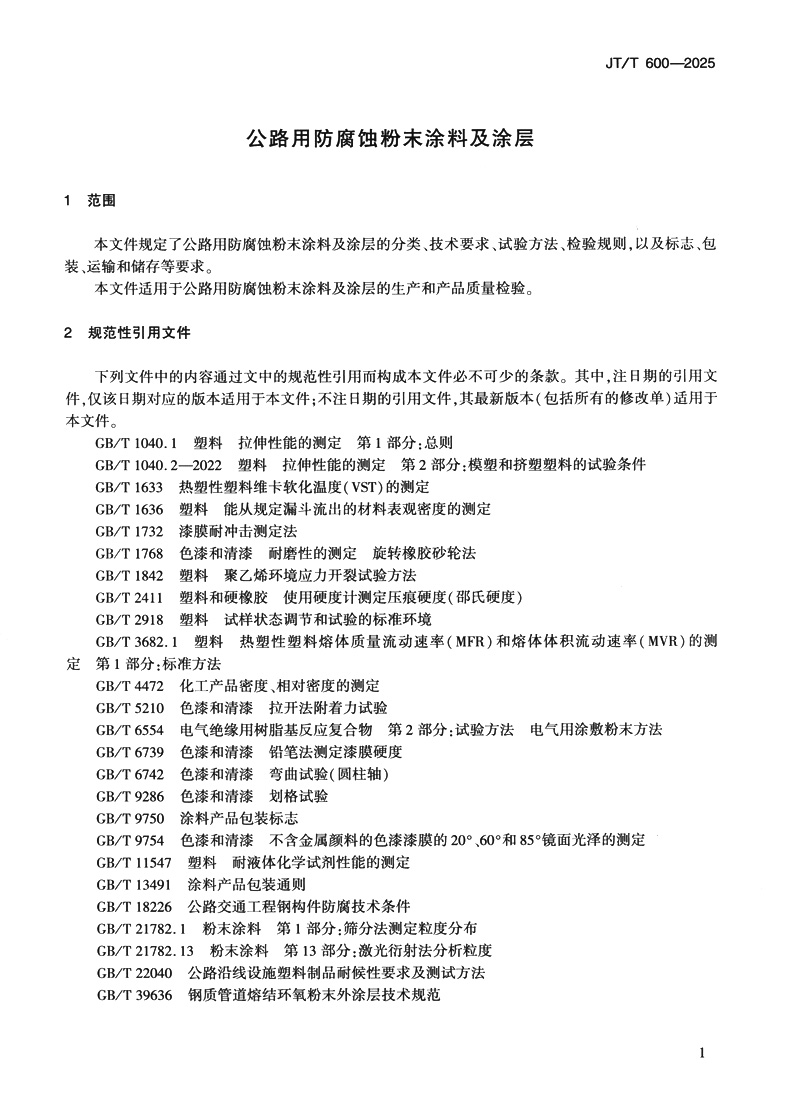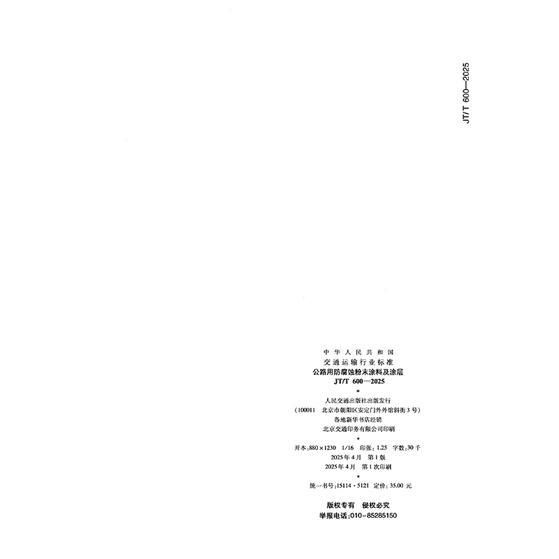 书名:公路用防腐蚀粉末涂料及涂层(JT/T 600—2025)