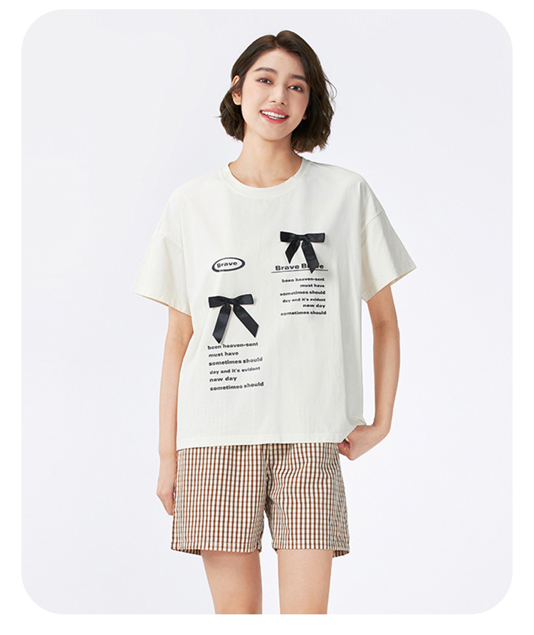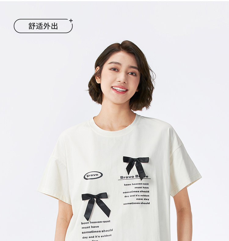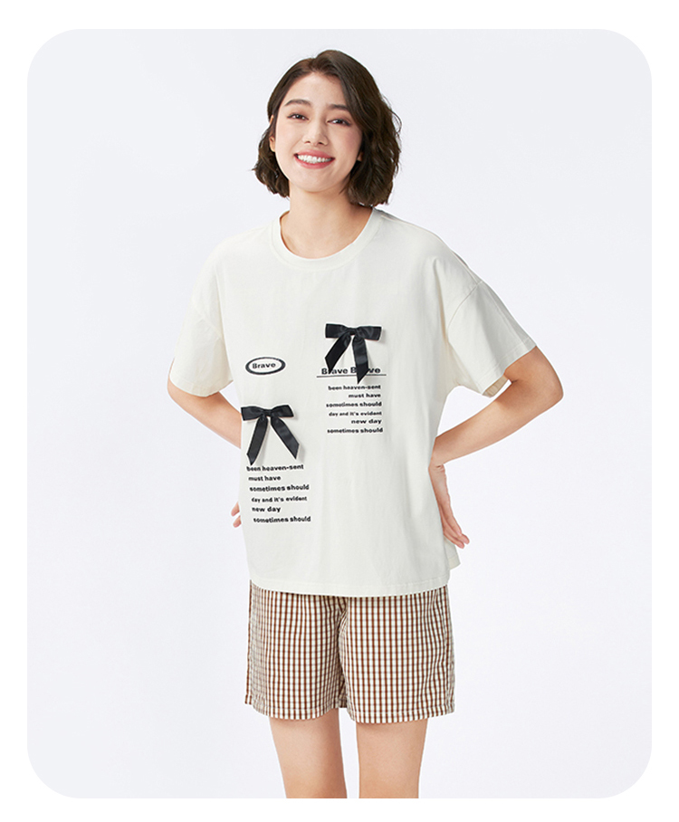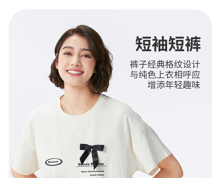 都市丽人亲情蜜语女士棉质短袖套装薄32支纯棉单面短袖类LHH0A5