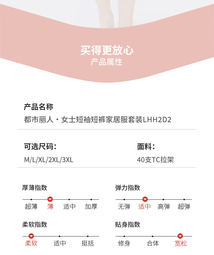 都市丽人舒适外出女士棉质短袖套装薄40支TC拉架短袖类LHH2D2