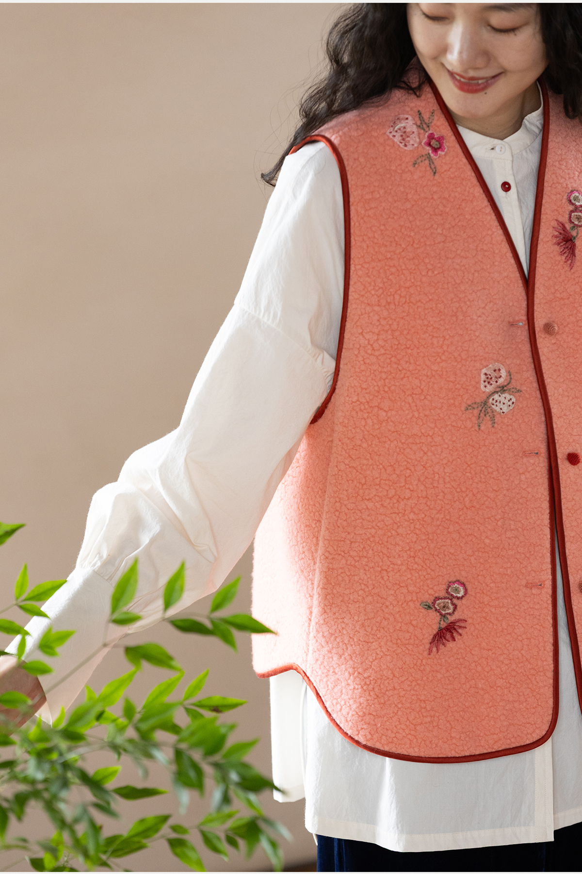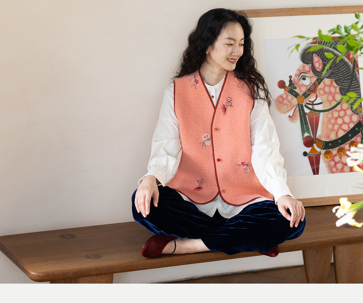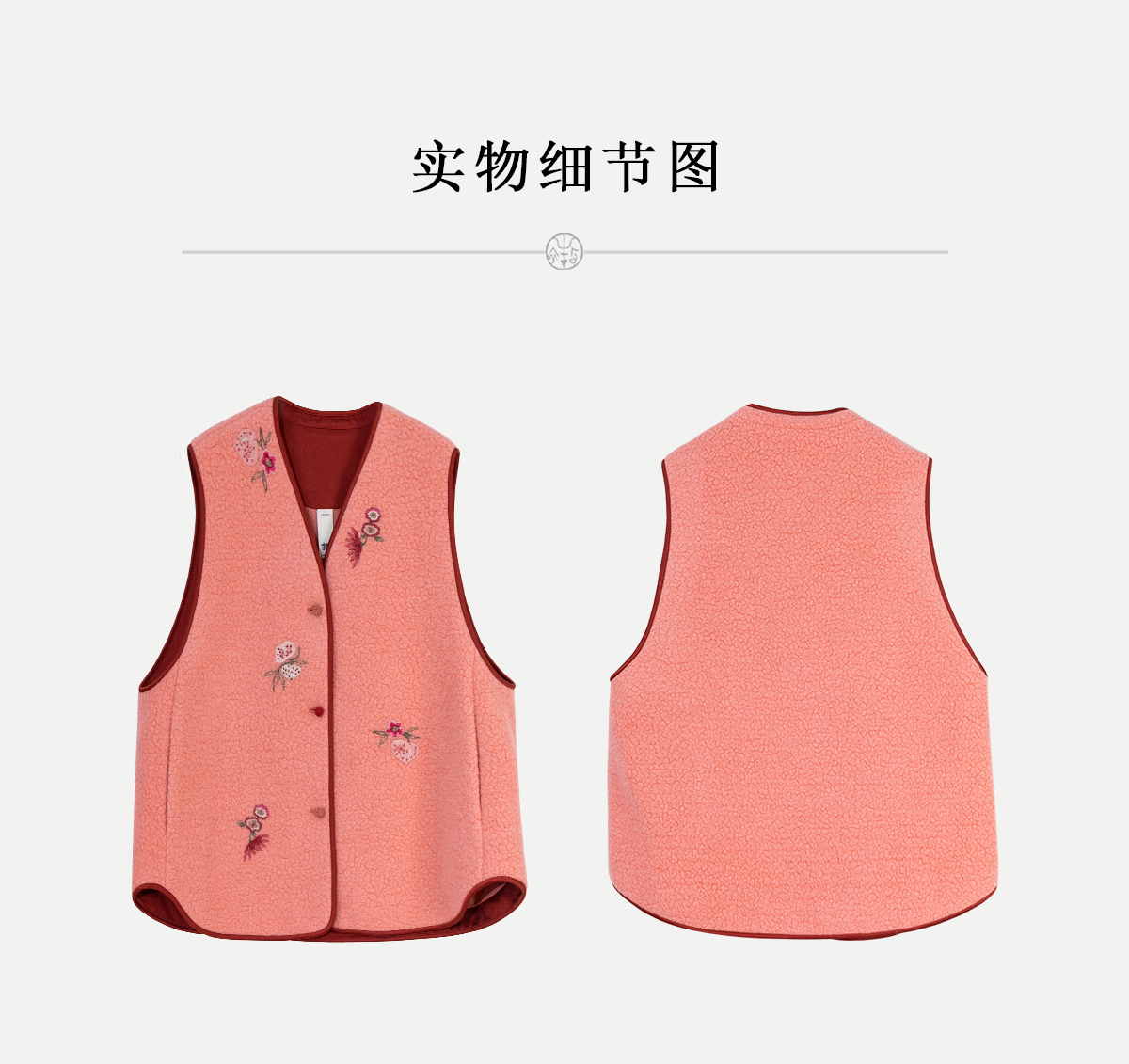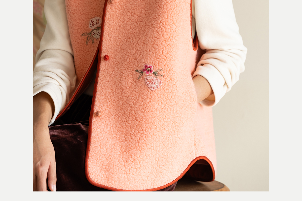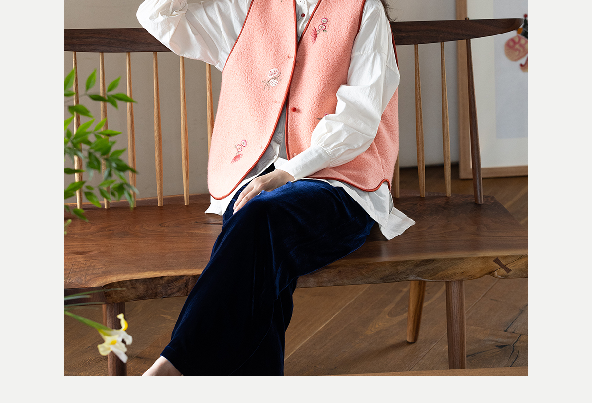 牧衣游原创 手工刺绣进口羊毛混纺羊羔毛马夹女新款红色开衫 离歌