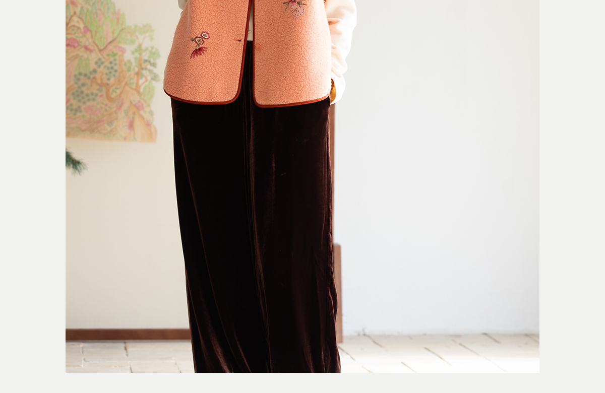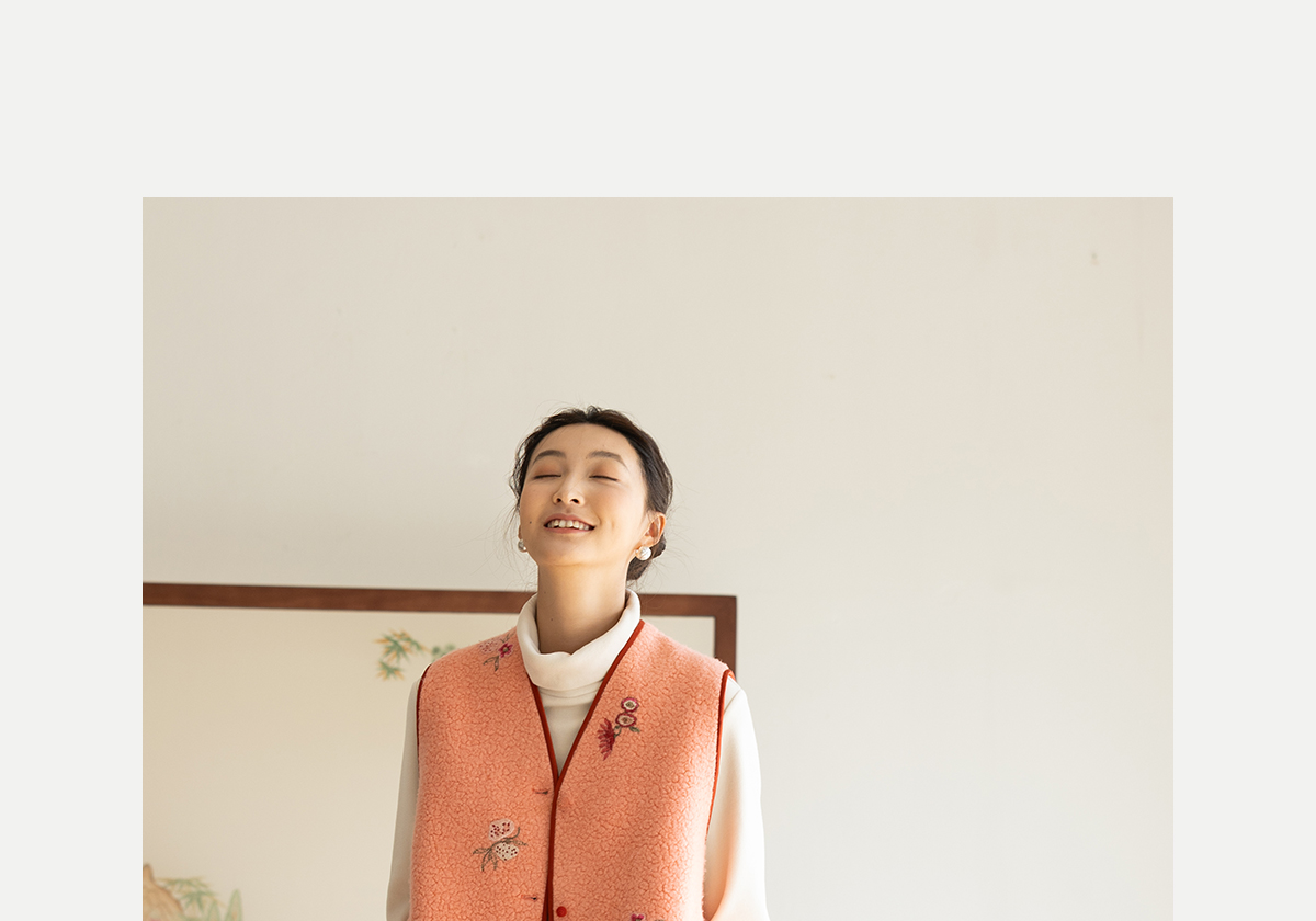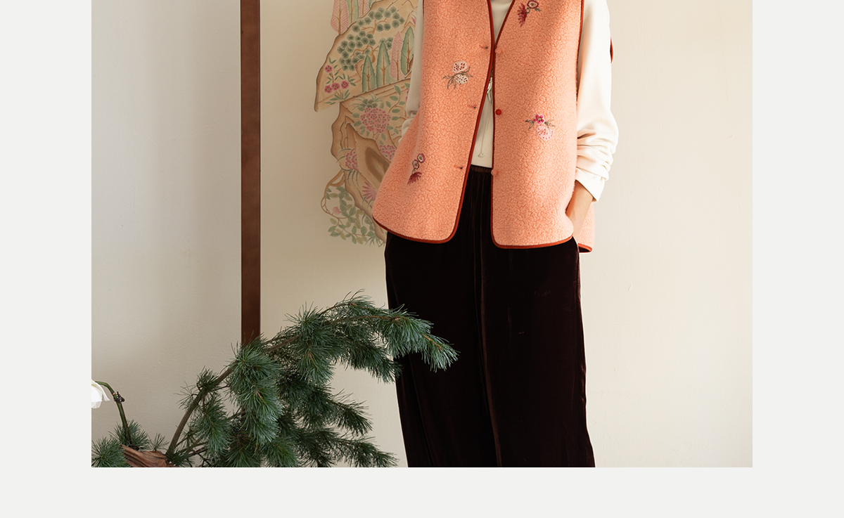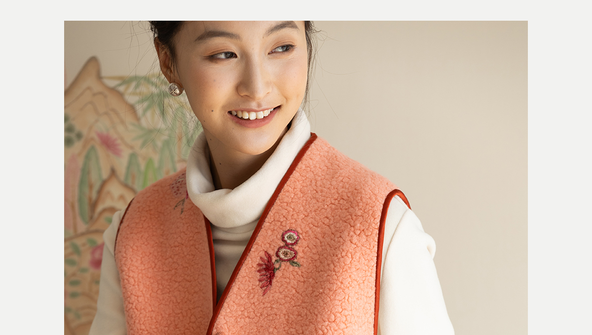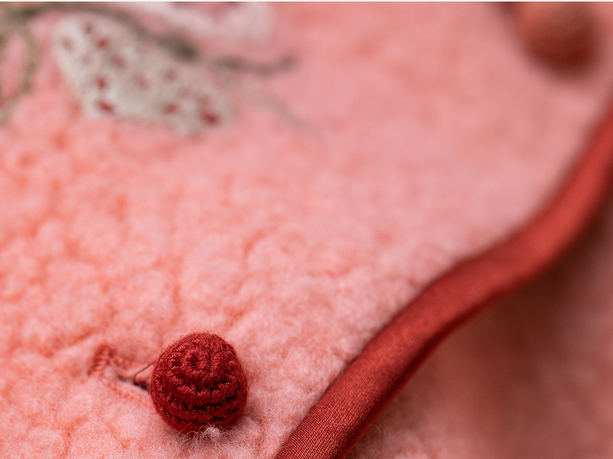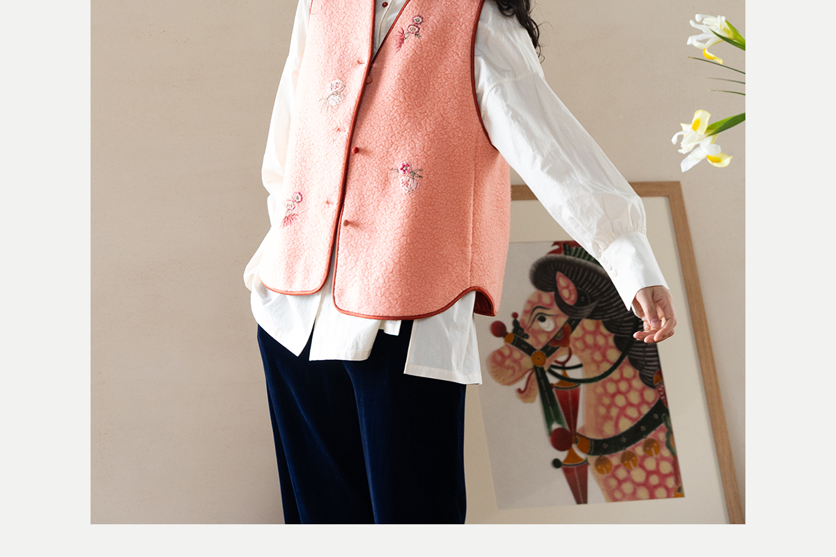 牧衣游原创 手工刺绣进口羊毛混纺羊羔毛马夹女新款红色开衫 离歌