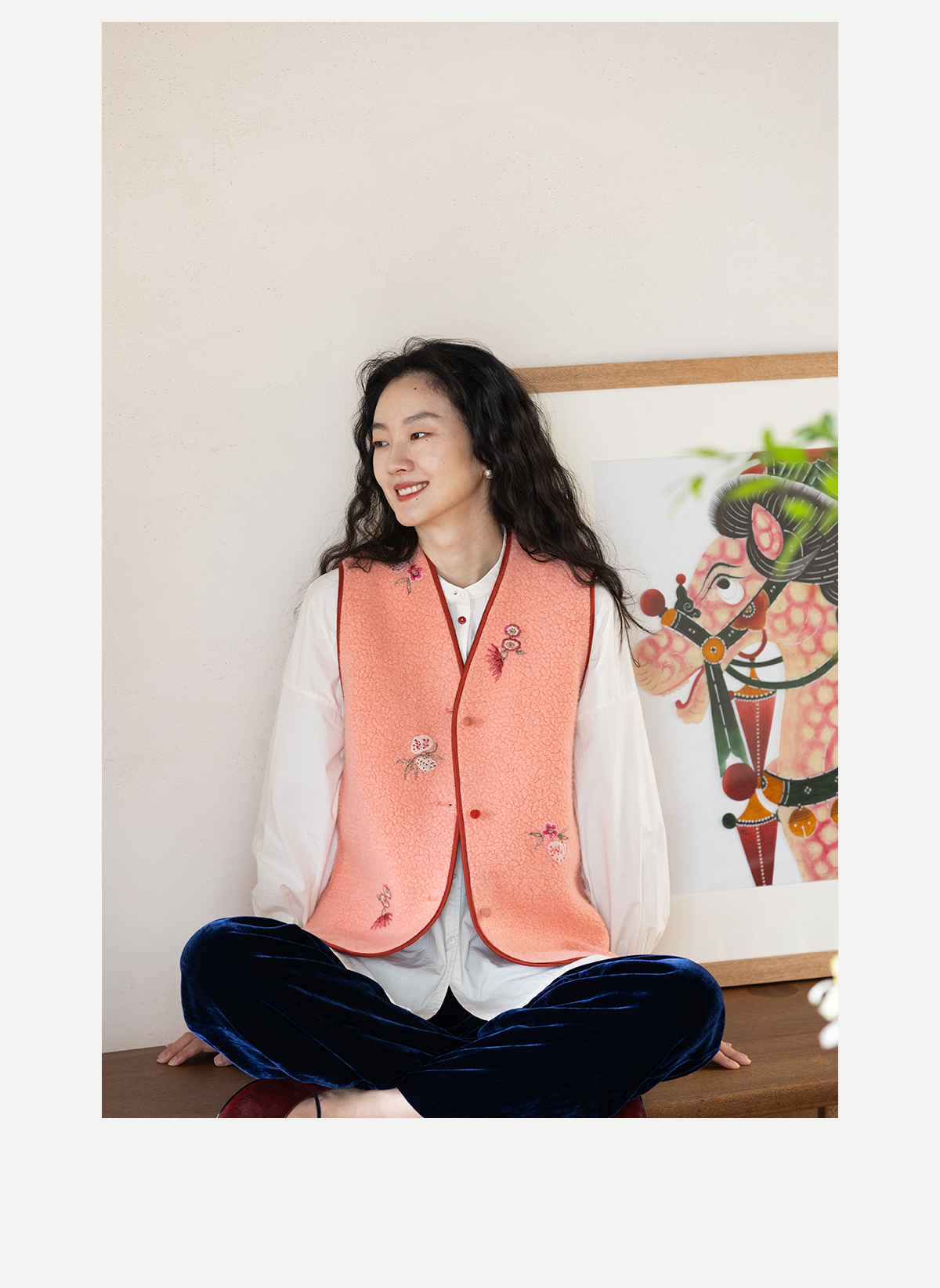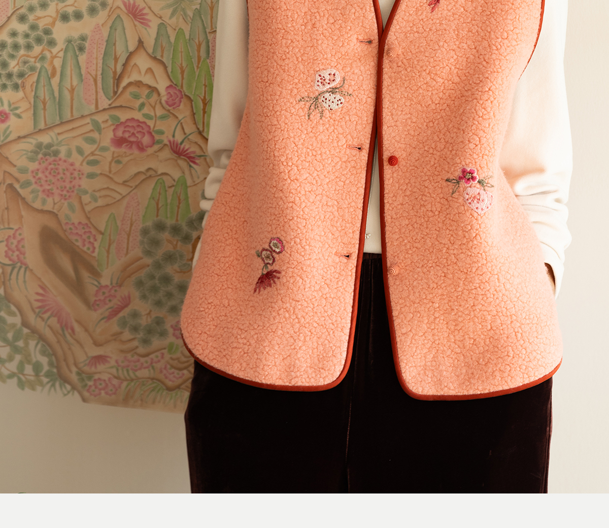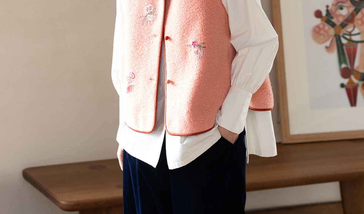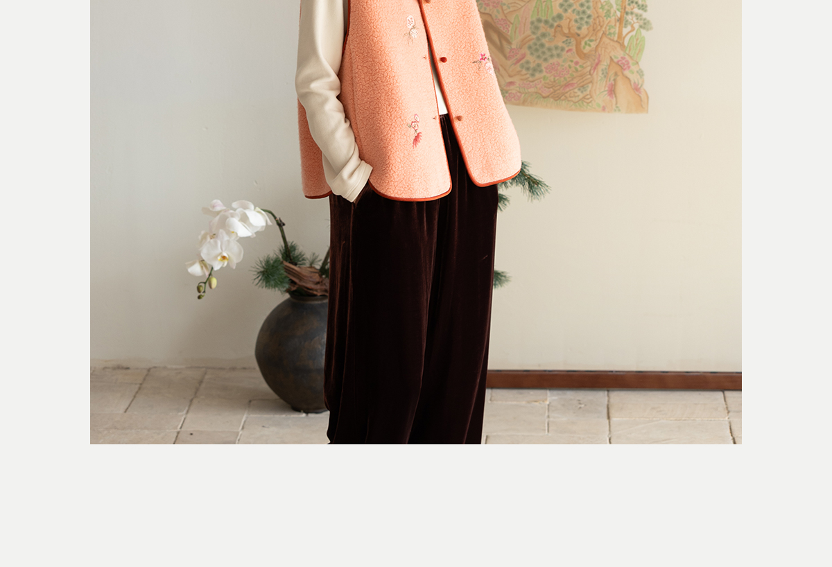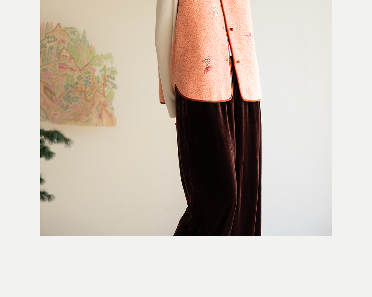 牧衣游原创 手工刺绣进口羊毛混纺羊羔毛马夹女新款红色开衫 离歌