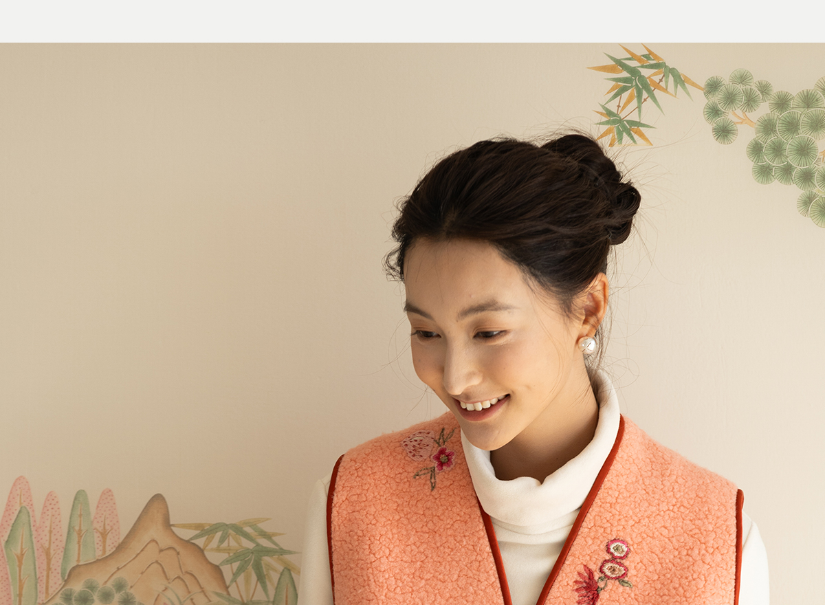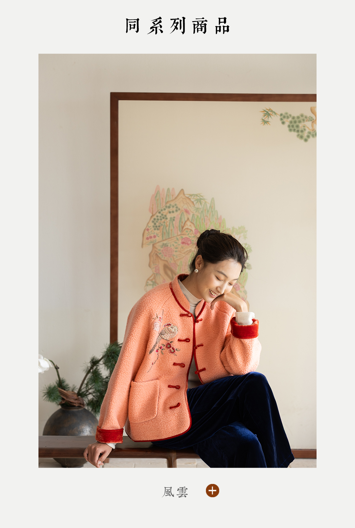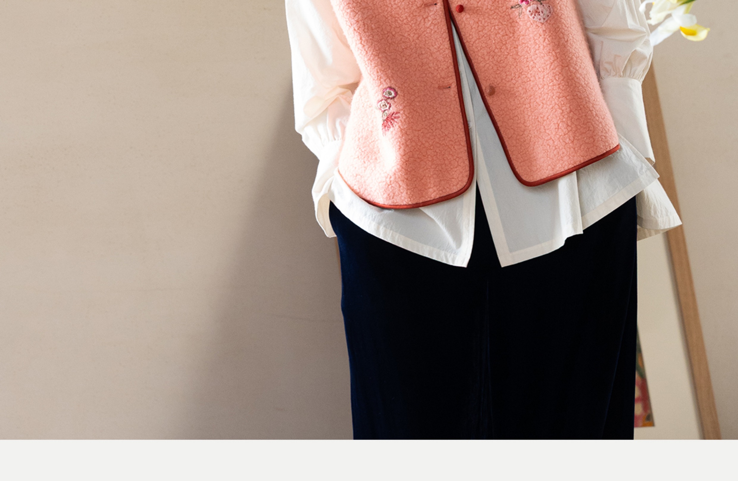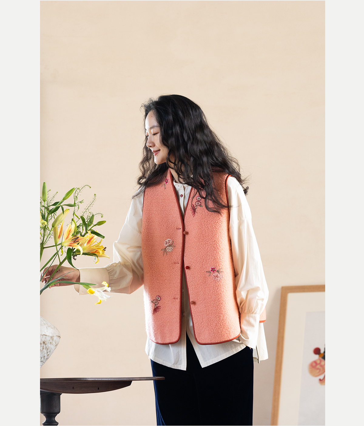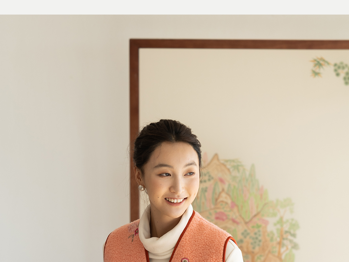 牧衣游原创 手工刺绣进口羊毛混纺羊羔毛马夹女新款红色开衫 离歌