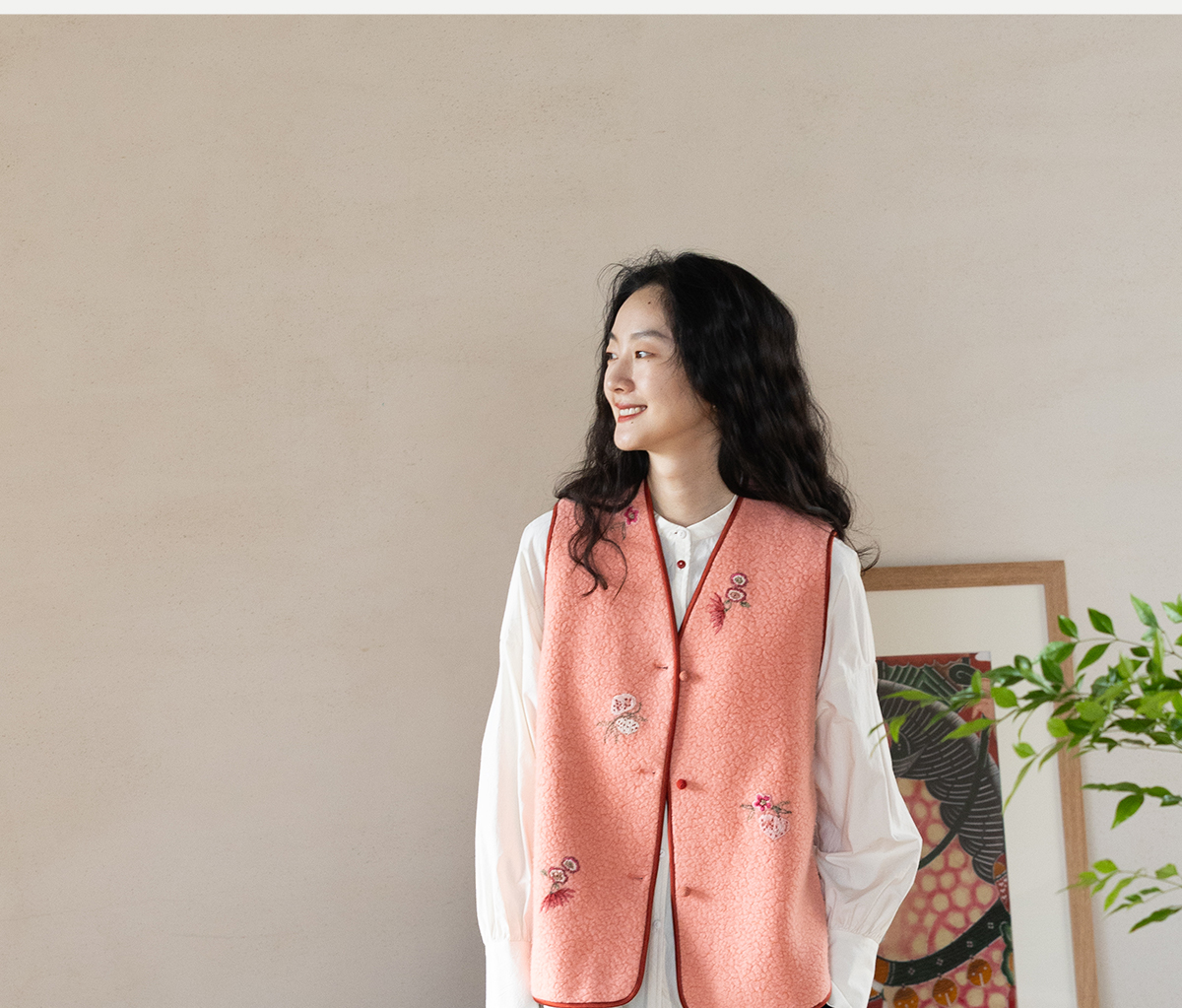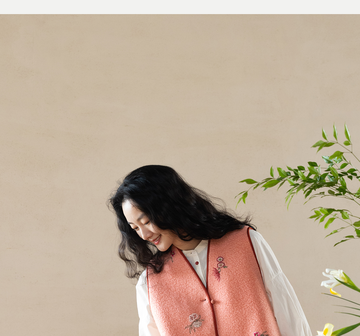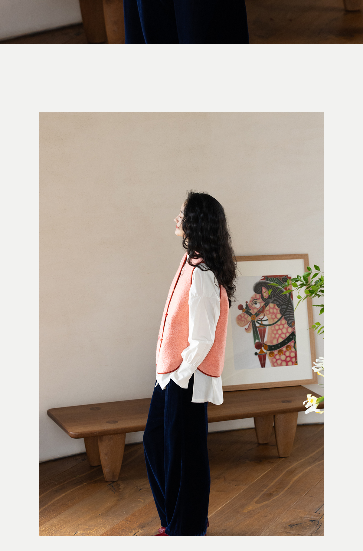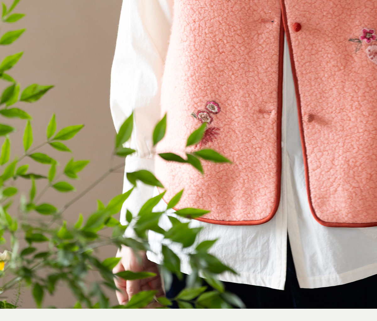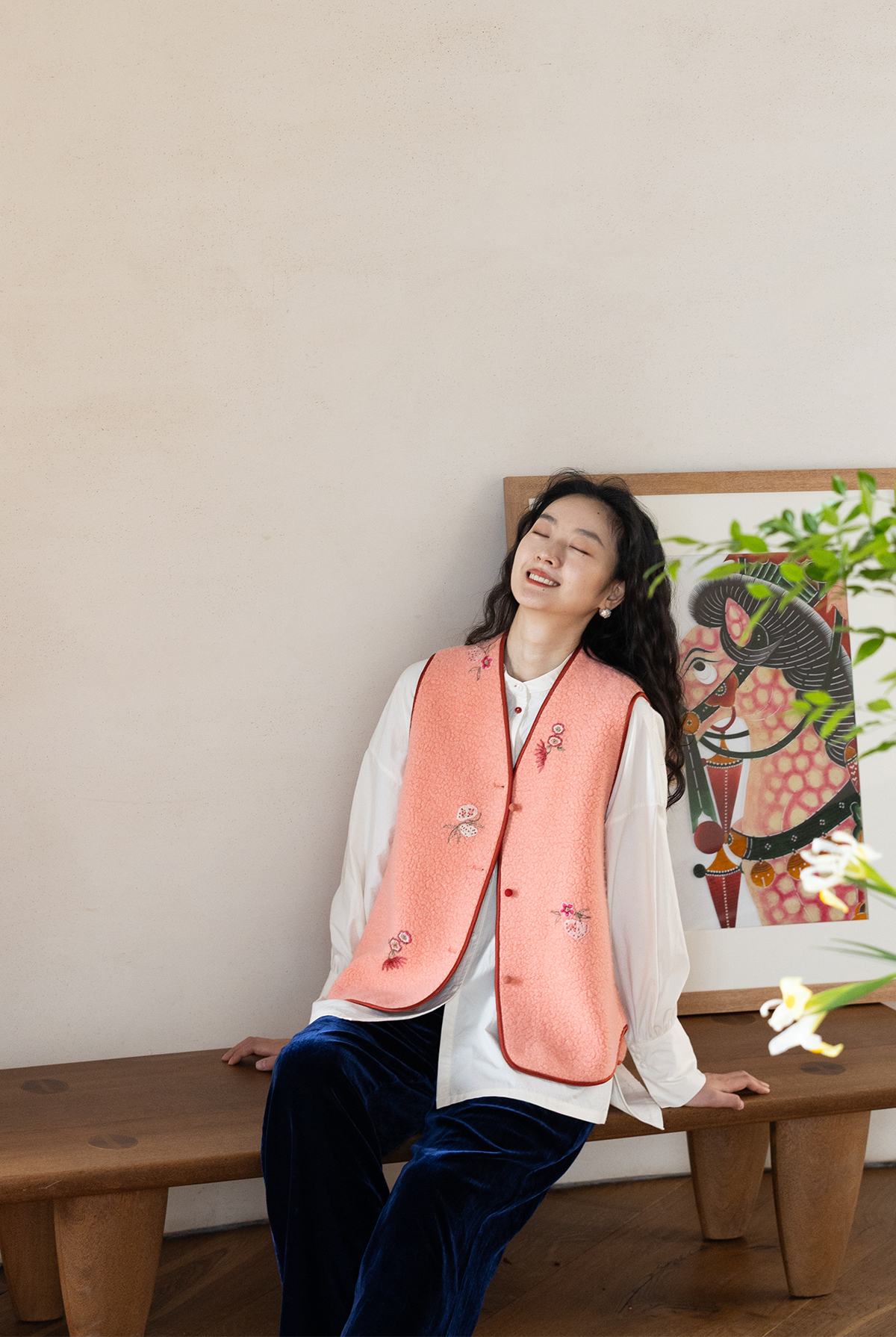 牧衣游原创 手工刺绣进口羊毛混纺羊羔毛马夹女新款红色开衫 离歌