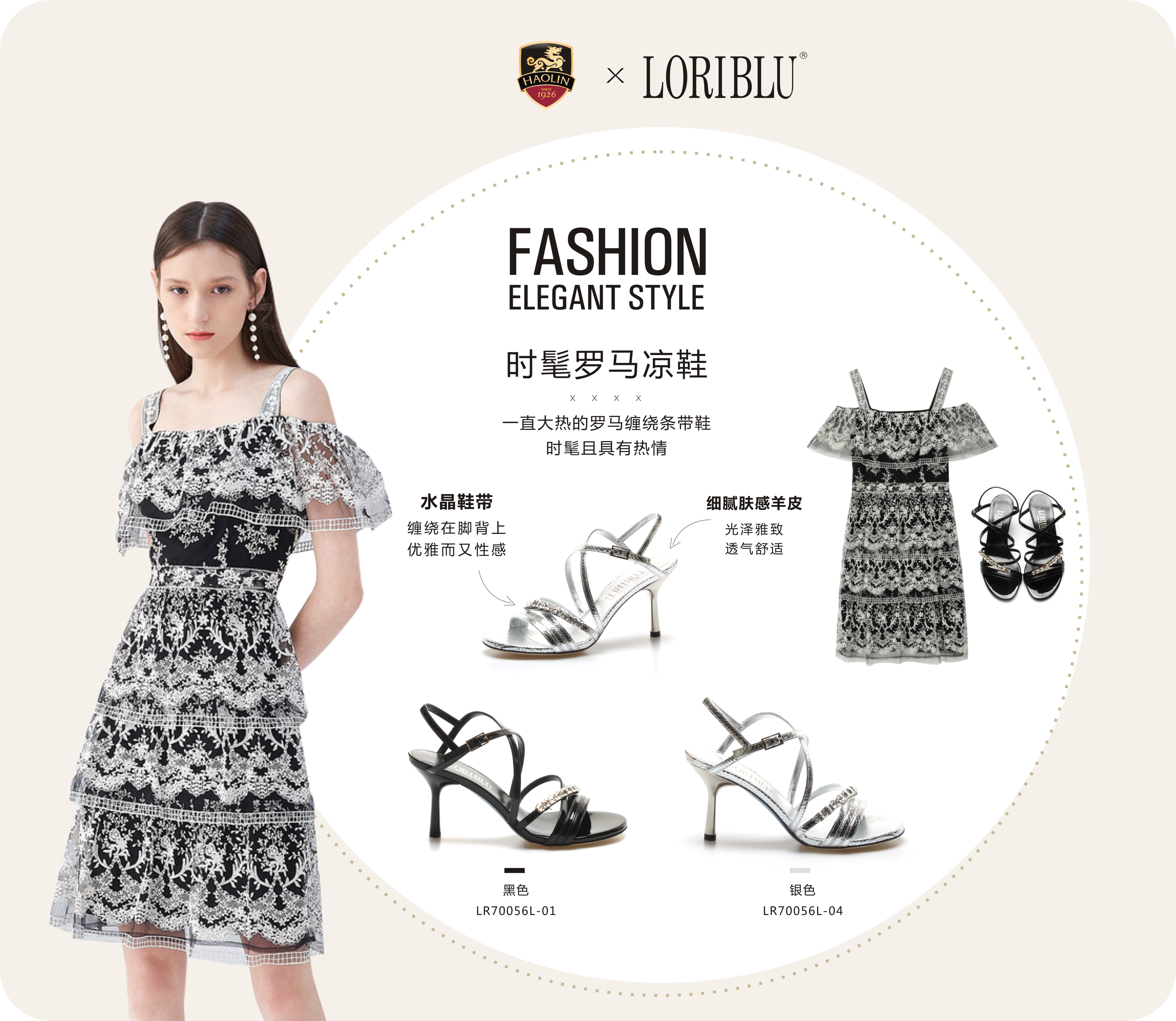 豪麟名鞋奥莱LORIBLU女鞋凉鞋羊皮革LR70056L黑色 原价4260元