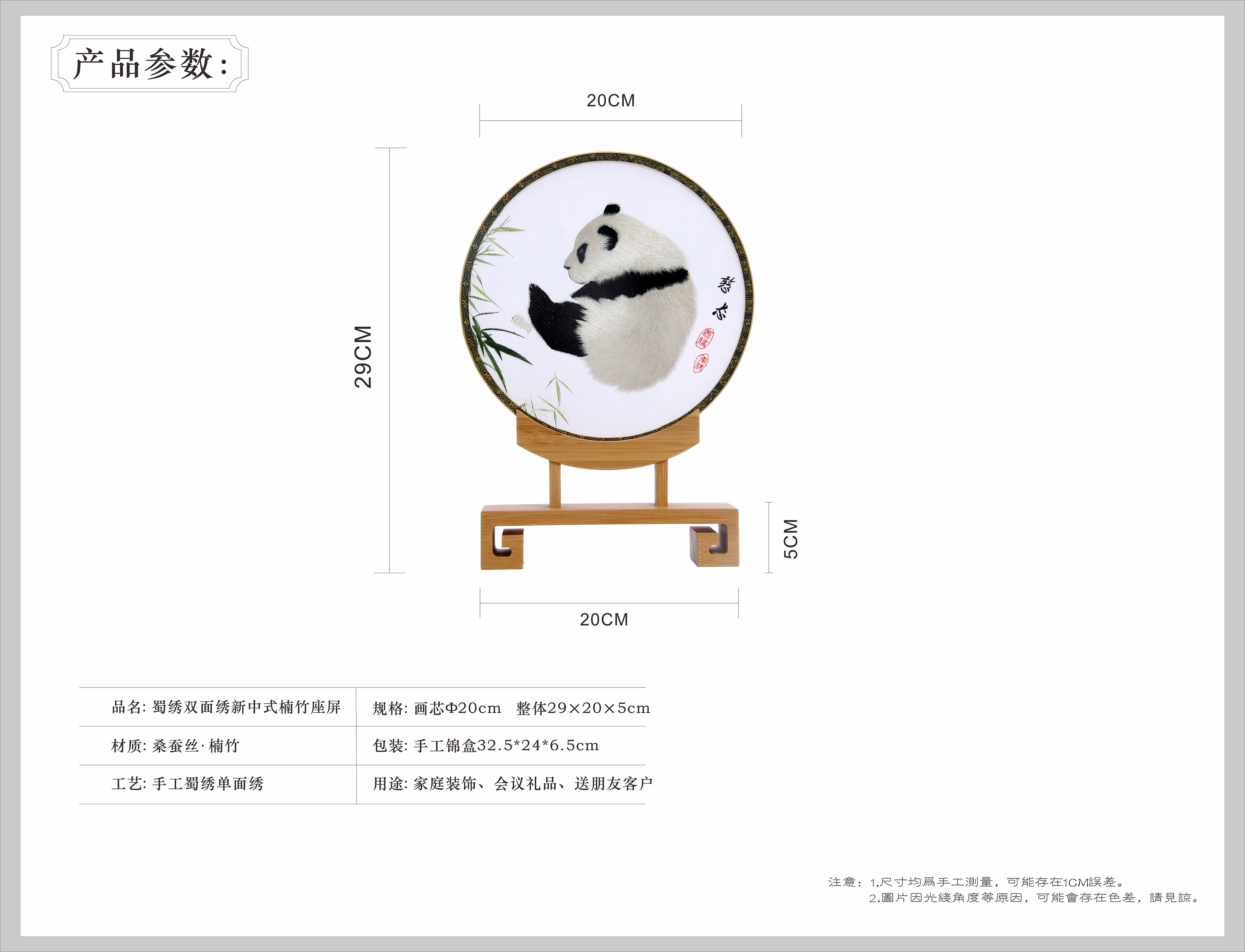 蜀锦双面绣新中式楠木座屏—憨态