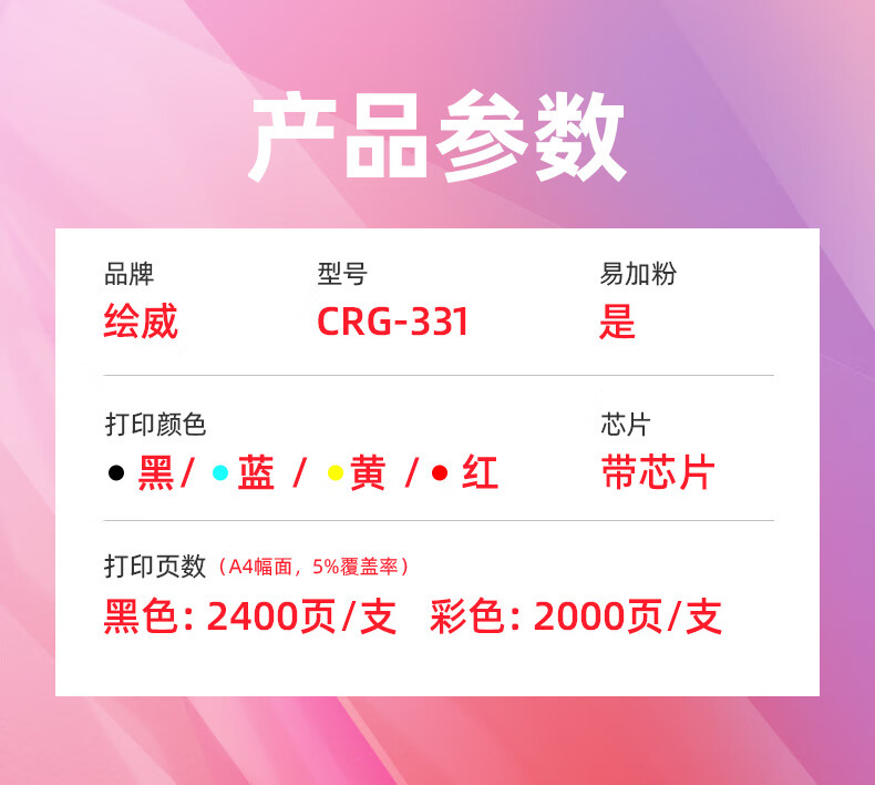 绘威CRG-331硒鼓适用佳能lbp7100cn硒鼓lbp7100cn打印机mf623cn mf621cn mf8280cw墨盒mf8250cn mf8230cn四色套装