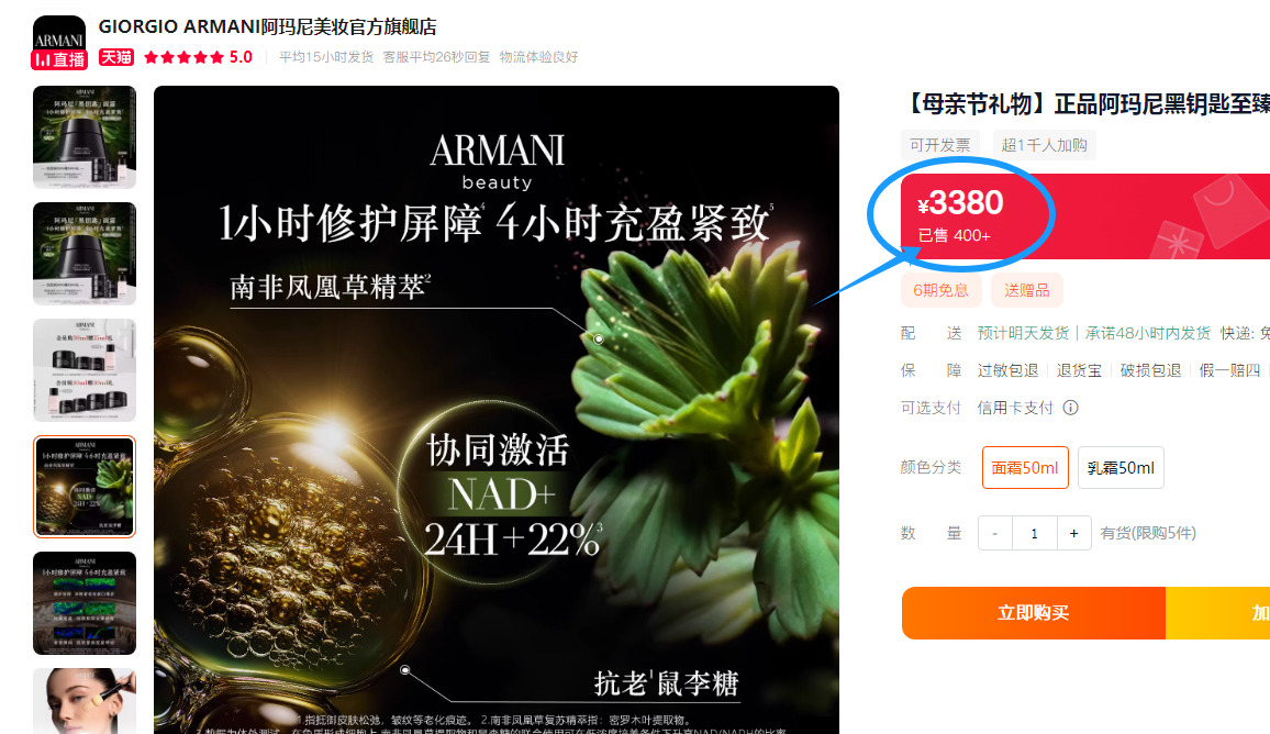 【5.10王炸割肉价】阿玛尼黑曜石至臻奂颜面霜15ml (限25年7月)