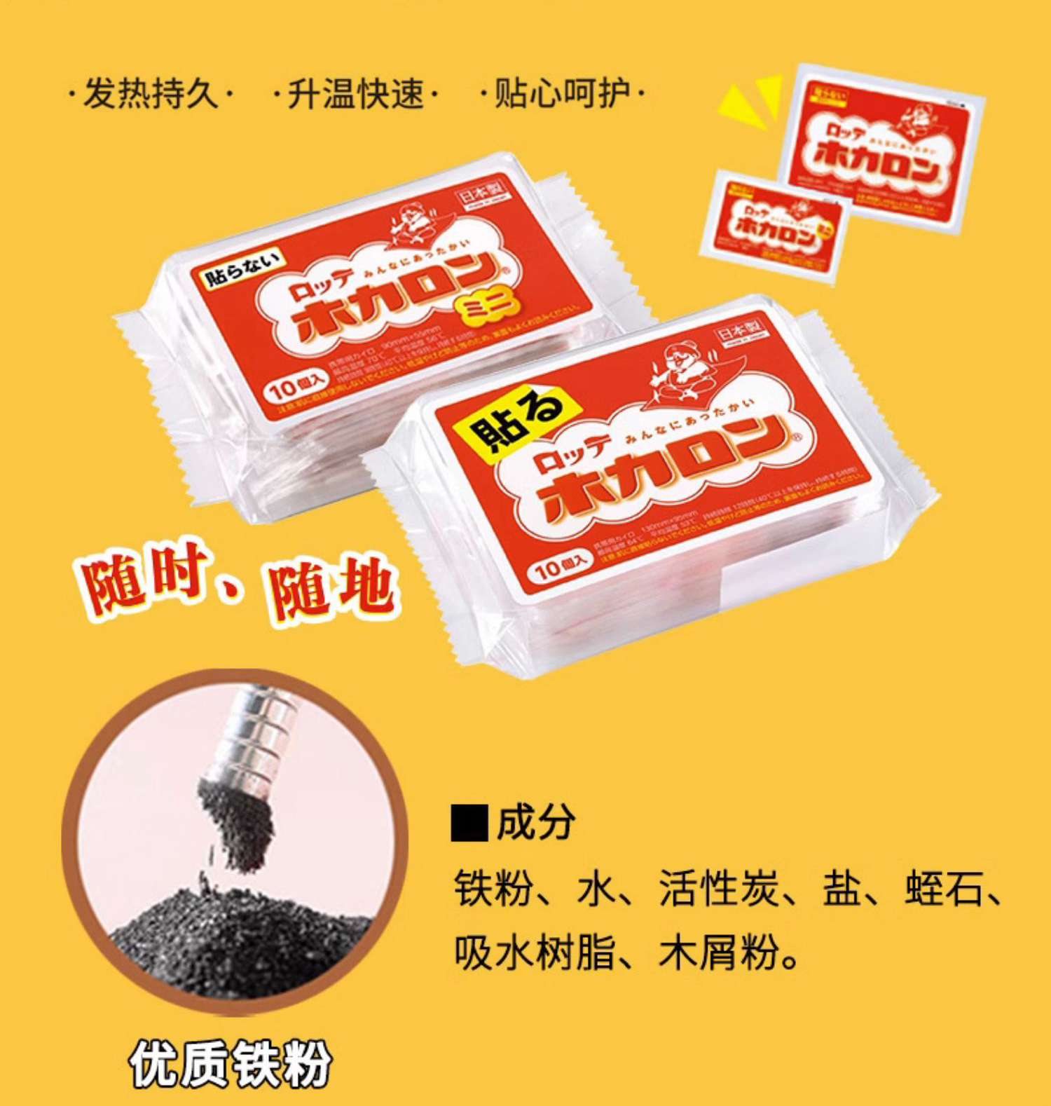 【商品名称】乐天LOTTE红卡珑便携式发热贴10片/袋